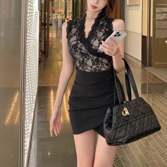 【3点セット】レースブラレット+オフショルトップス+レースヘムスカート ・12766