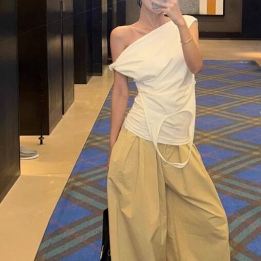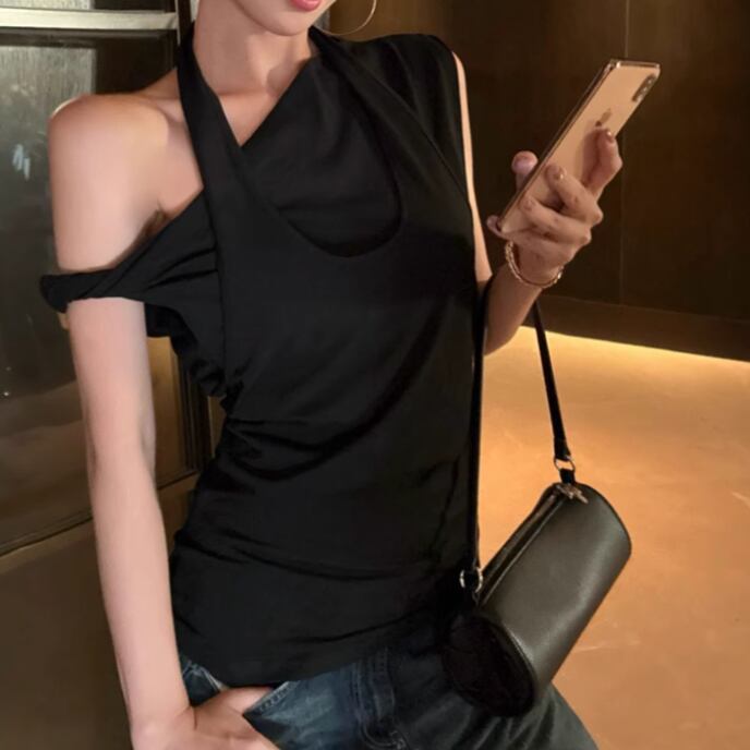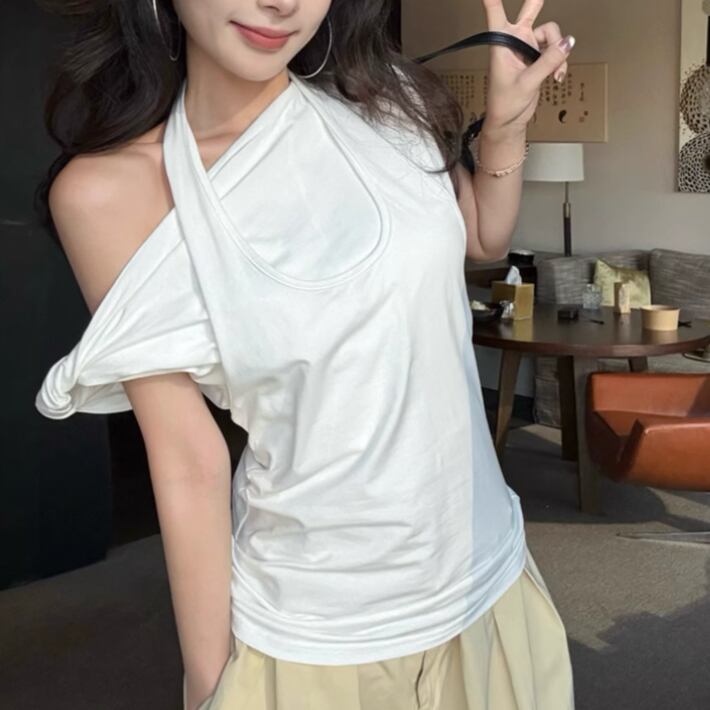 5色/オープンショルダードレープネックトップス ・12357