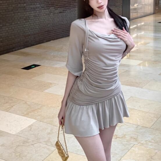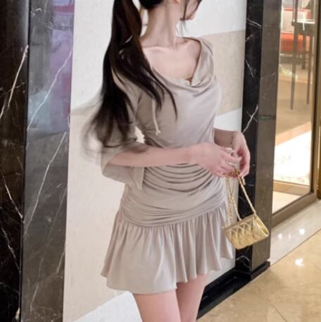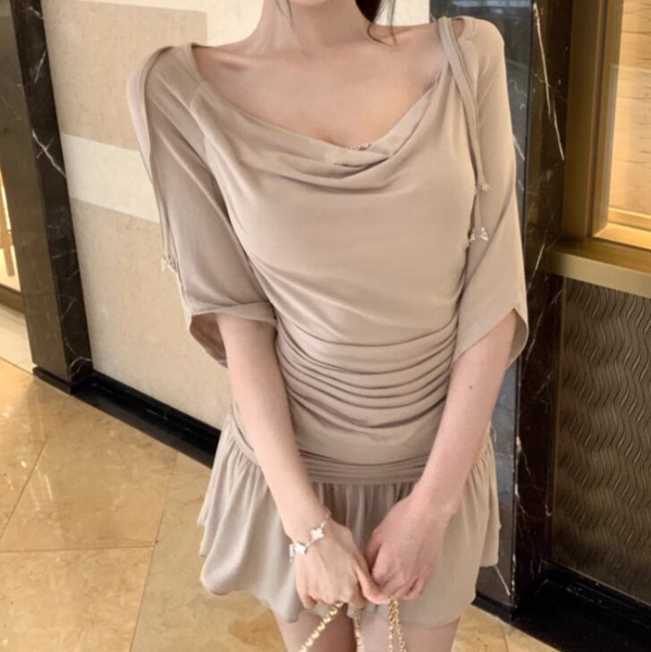 【2点セット】3色/フーディーカシュクールトップス+マーメイドスカート ・12506