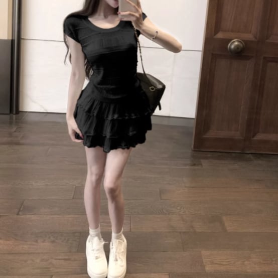 ▽Instagram「新作情報配信中」 フォローお願いいたします。 https://www.instagram.com/rote_roze.official/ ▼カラー グレー(画像2枚目) ブラック(画像3枚目) イエロー(画像4枚目) アプリコット(画像5枚目) ▼サイズ [ Sサイズ ] トップス:着丈49cm バスト72cm 肩幅45cm スカート:着丈32cm ウエスト58cm ヒップ84cm [ Mサイズ ] トップス:着丈50cm バスト76cm 肩幅46cm スカート:着丈33cm ウエスト62cm ヒップ88cm [ Lサイズ ] トップス:着丈51cm バスト80cm 肩幅47cm スカート:着丈34cm ウエスト66cm ヒップ92cm ※1-3cm程度の誤差がある場合がございます。予めご了承ください。 ▼シーズン 春,夏 ▼同じカテゴリの商品はこちら https://www.roteroze.com/categories/4991976 ▽お支払い方法 ・クレジットカード決済 ・キャリア決済 (docomo/au/Softbank/Y!mobile) ・後払い決済 (商品お届け後コンビニ払いなど) ▽注意点 ※こちらの商品は決済から10日-3週間前後でのお届けとなります。 ※配送日時指定等に関しては、ご指定できないことご了承くださいませ。 ※できる限り早くお届けできるように手配させて頂きます。 ※検品はしておりますが、もし届いた商品に不備がありましたら、誠実に対応させていただきます。 商品ID:RR011008