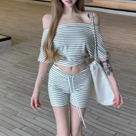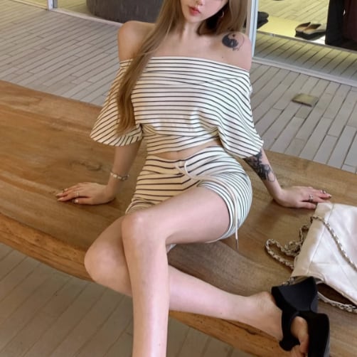 【3点セット】レースブラレット+オフショルトップス+レースヘムスカート ・12766