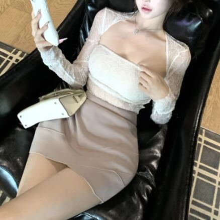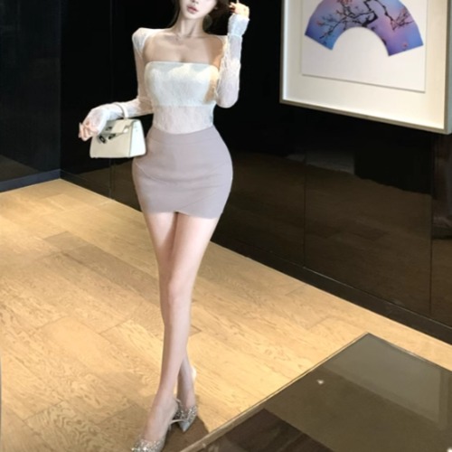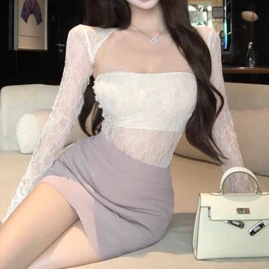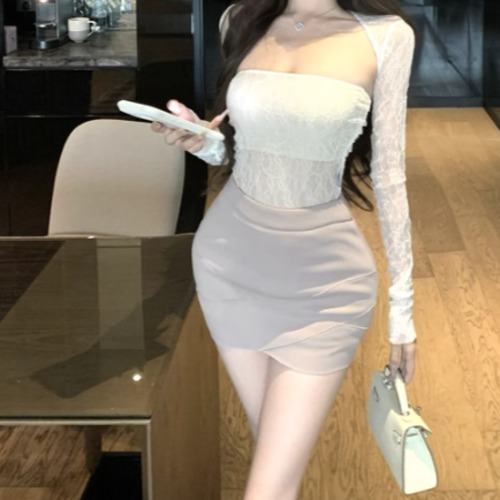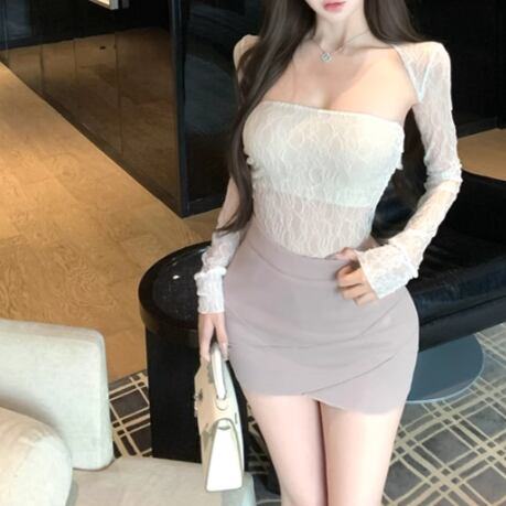 【3点セット】レースブラレット+オフショルトップス+レースヘムスカート ・12766