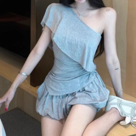 【2点セット】3色/フーディーカシュクールトップス+マーメイドスカート ・12506