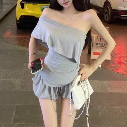【3点セット】レースブラレット+オフショルトップス+レースヘムスカート ・12766