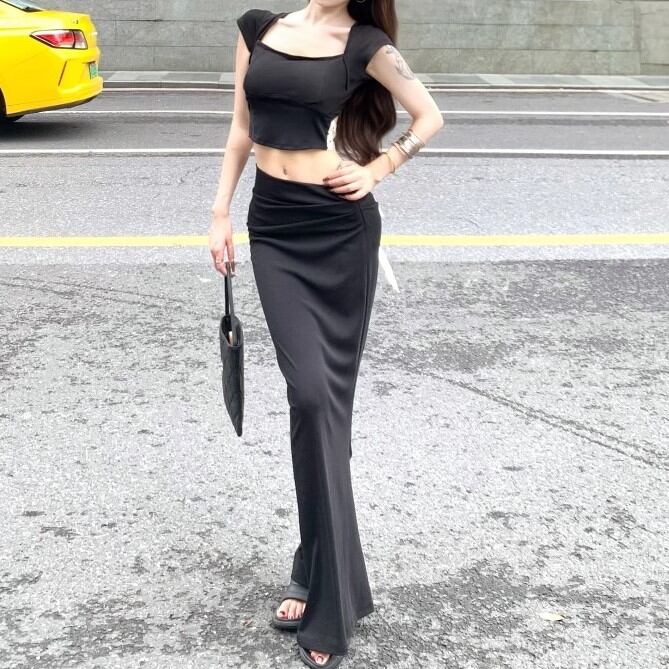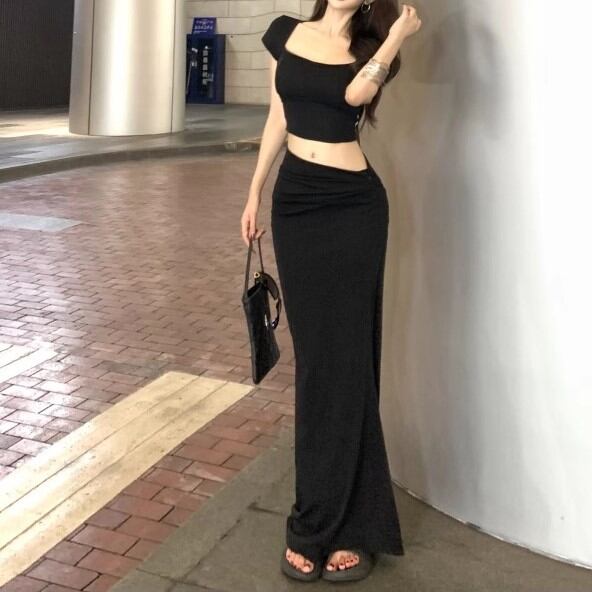 【2点セット】3色/フーディーカシュクールトップス+マーメイドスカート ・12506