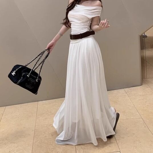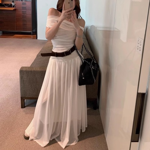 【3点セット】レースブラレット+オフショルトップス+レースヘムスカート ・12766