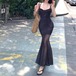 【2点セット】3色/フーディーカシュクールトップス+マーメイドスカート ・12506
