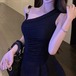 【2点セット】3色/フーディーカシュクールトップス+マーメイドスカート ・12506