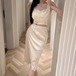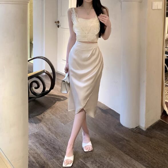 【2点セット】3色/フーディーカシュクールトップス+マーメイドスカート ・12506