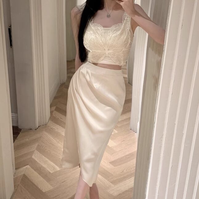 【3点セット】レースブラレット+オフショルトップス+レースヘムスカート ・12766