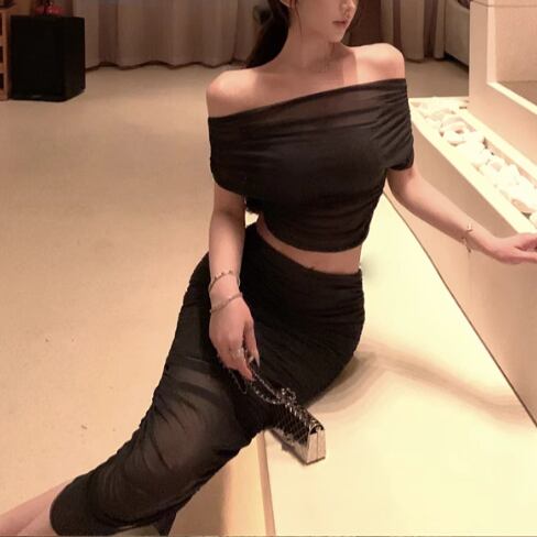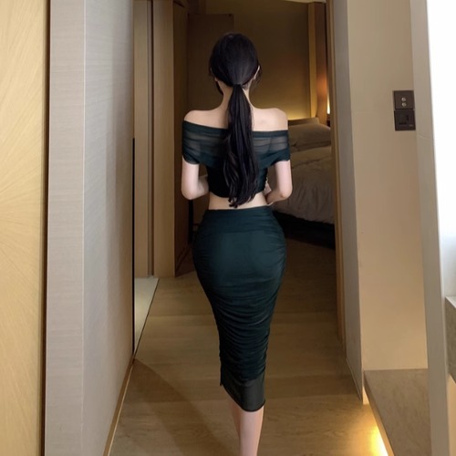 【2点セット】3色/フーディーカシュクールトップス+マーメイドスカート ・12506