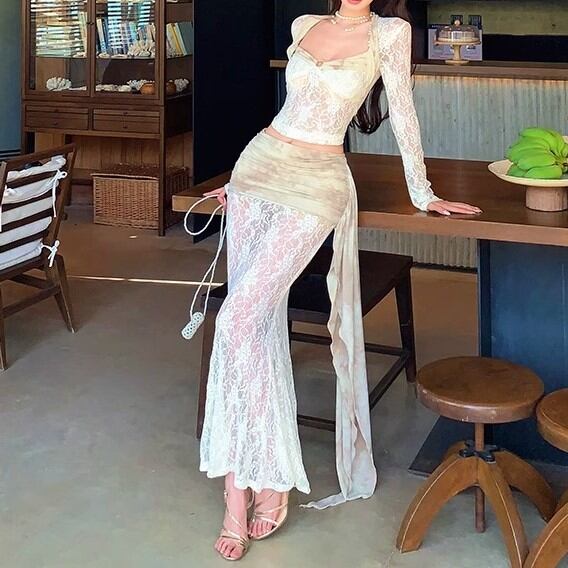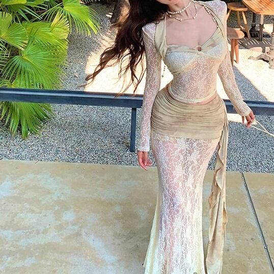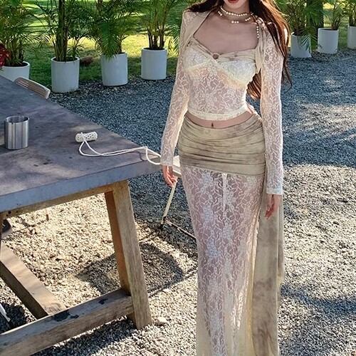 【3点セット】レースブラレット+オフショルトップス+レースヘムスカート ・12766