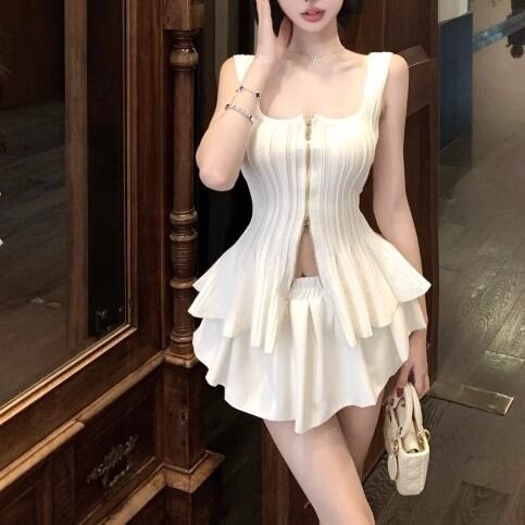 【2点セット】3色/フーディーカシュクールトップス+マーメイドスカート ・12506
