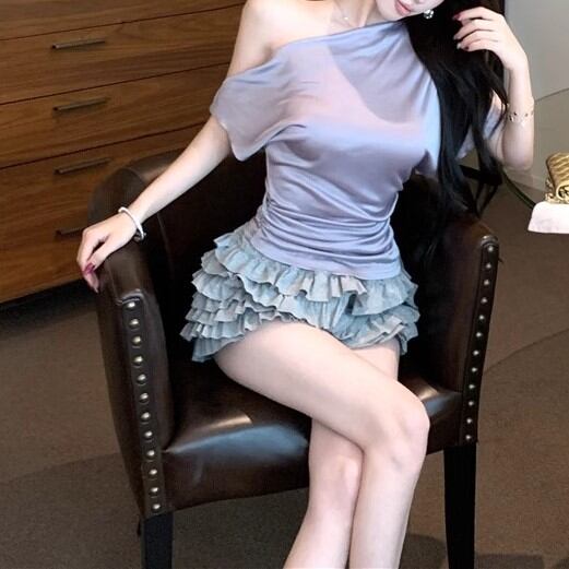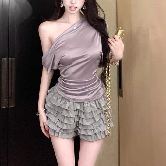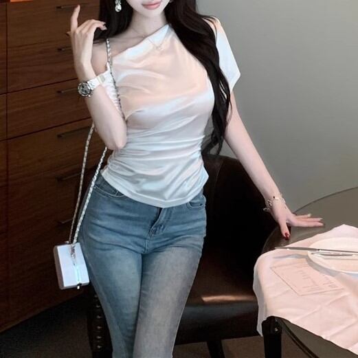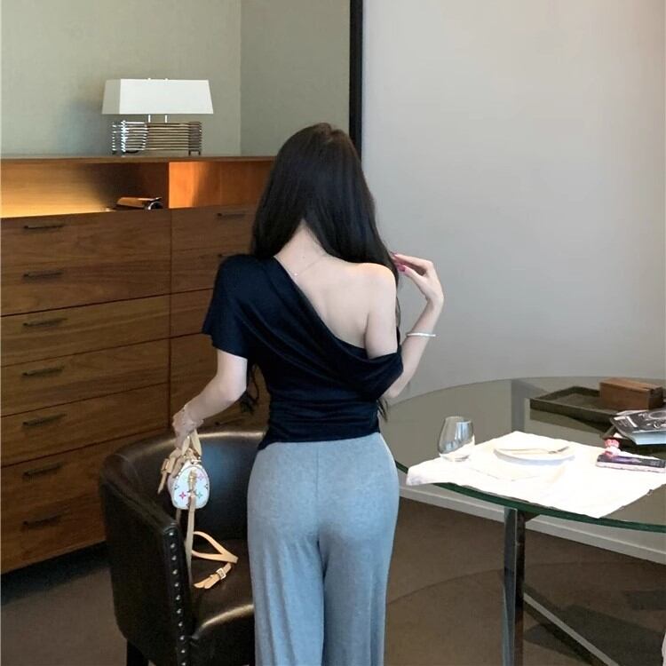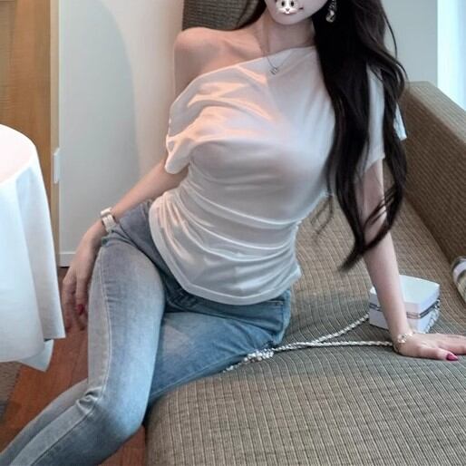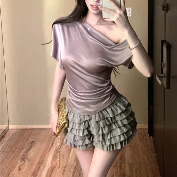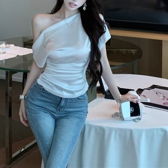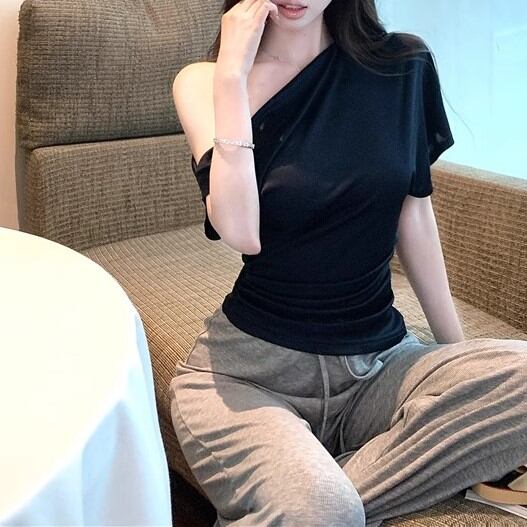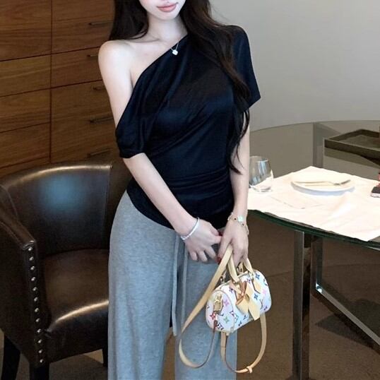 5色/オープンショルダードレープネックトップス ・12357