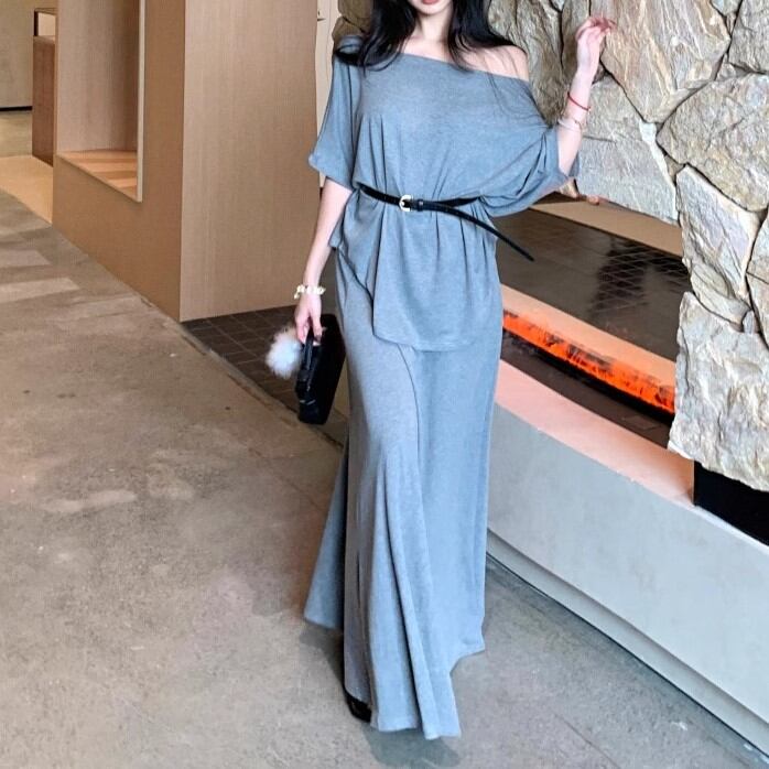 【2点セット】3色/フーディーカシュクールトップス+マーメイドスカート ・12506