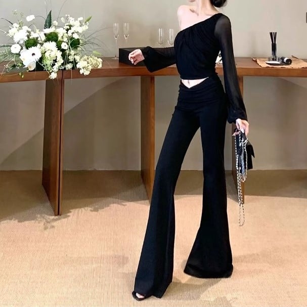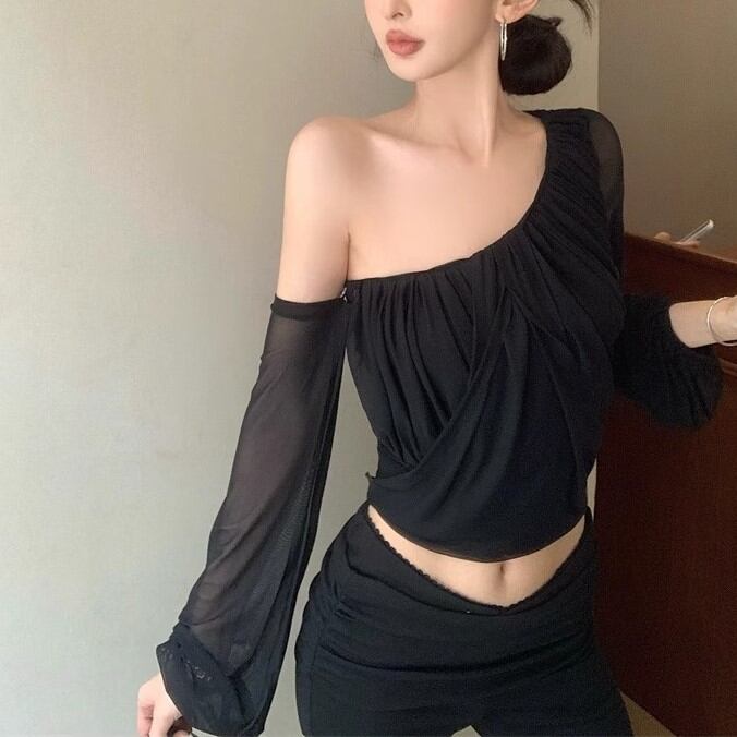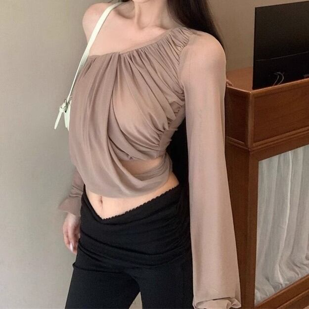 5色/オープンショルダードレープネックトップス ・12357