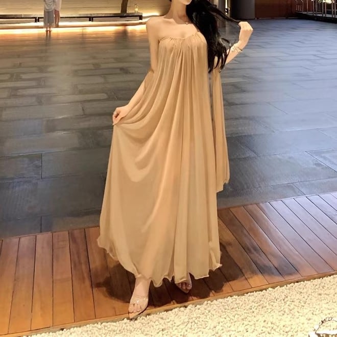 4色/シアースリーブストラップショルダーワンピ ・12626