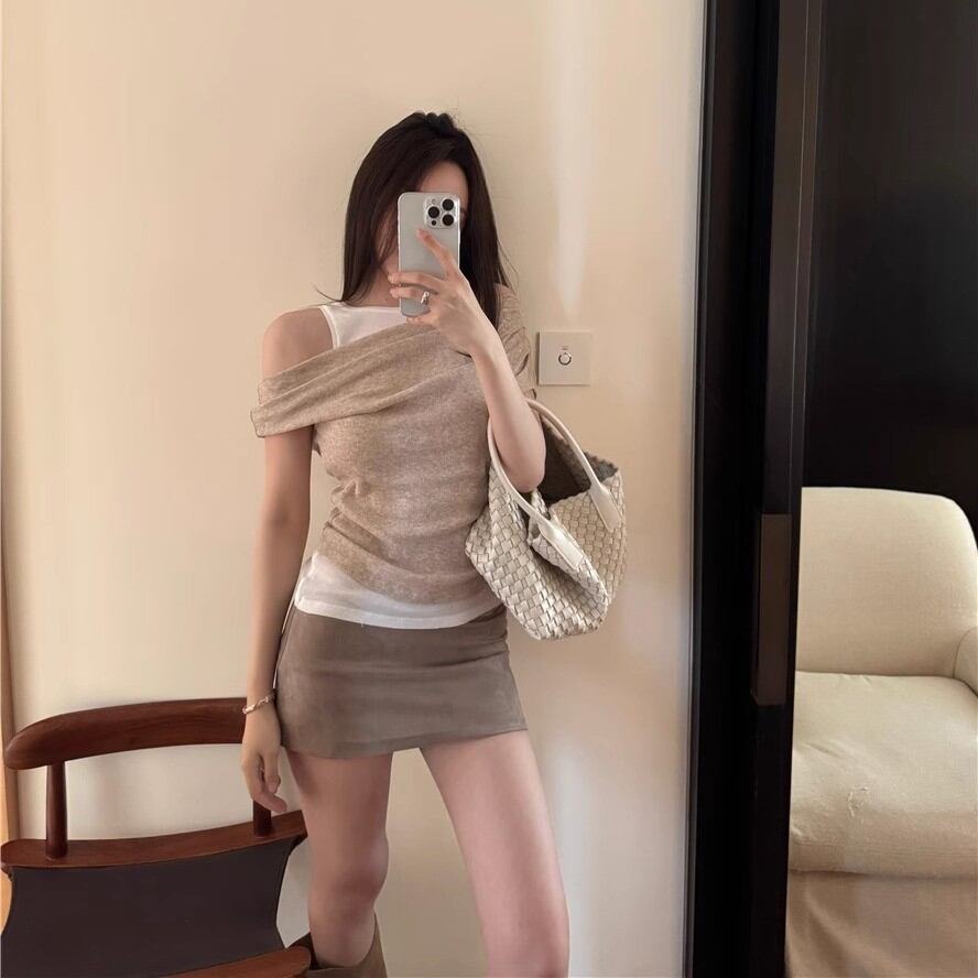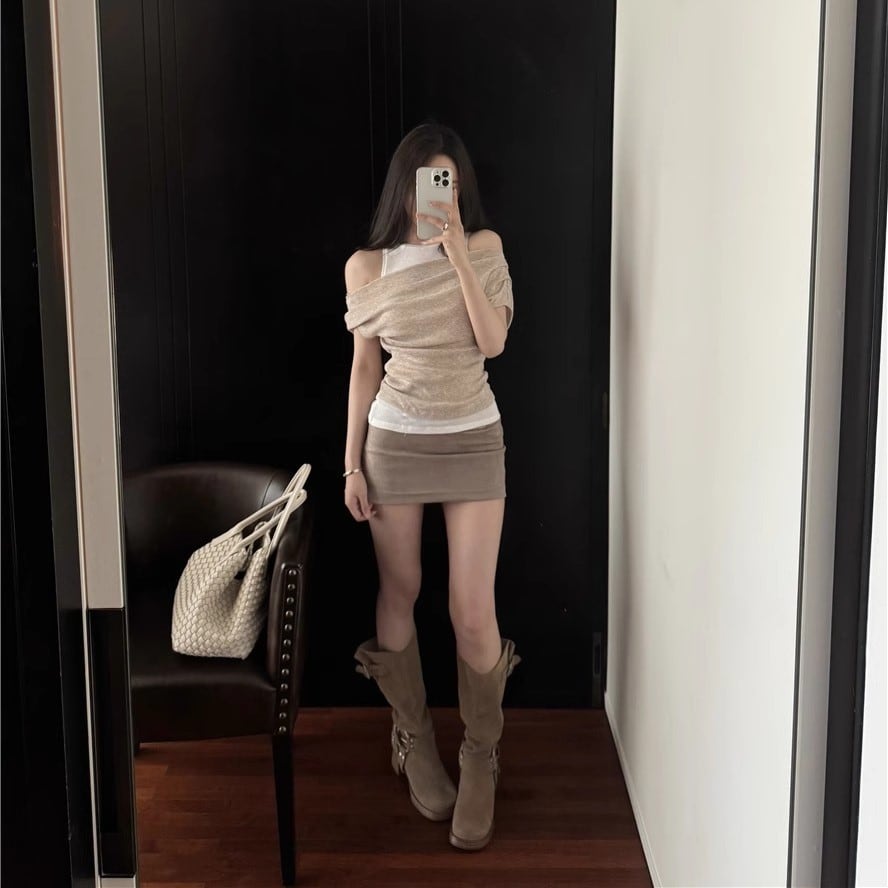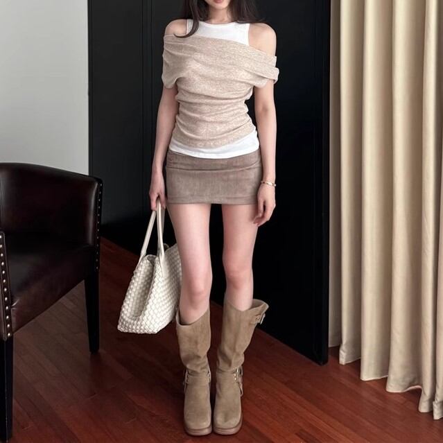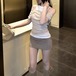 【2点セット】3色/フーディーカシュクールトップス+マーメイドスカート ・12506