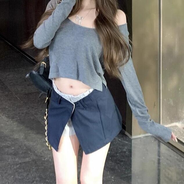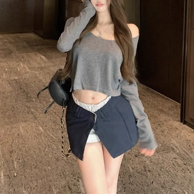 【2点セット】3色/フーディーカシュクールトップス+マーメイドスカート ・12506