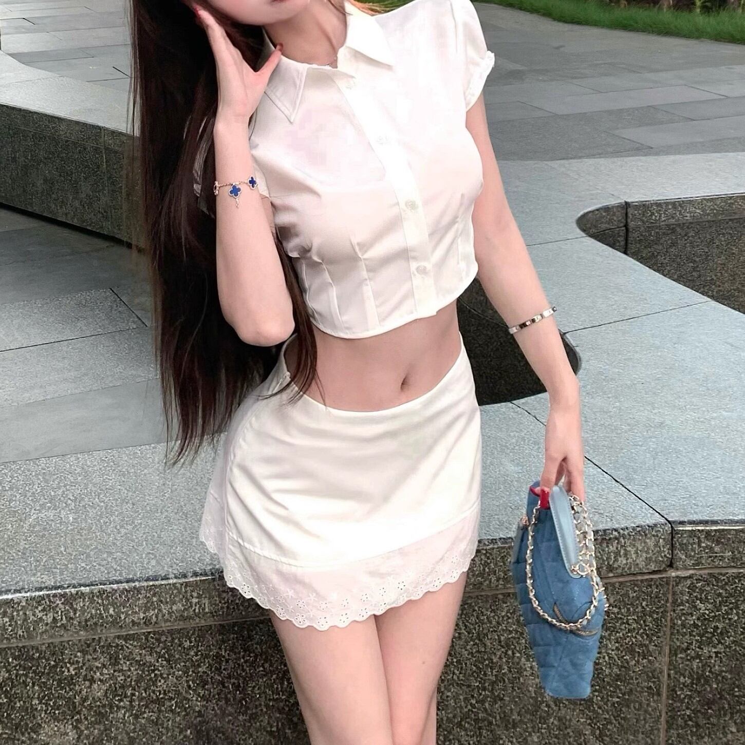 【3点セット】レースブラレット+オフショルトップス+レースヘムスカート ・12766