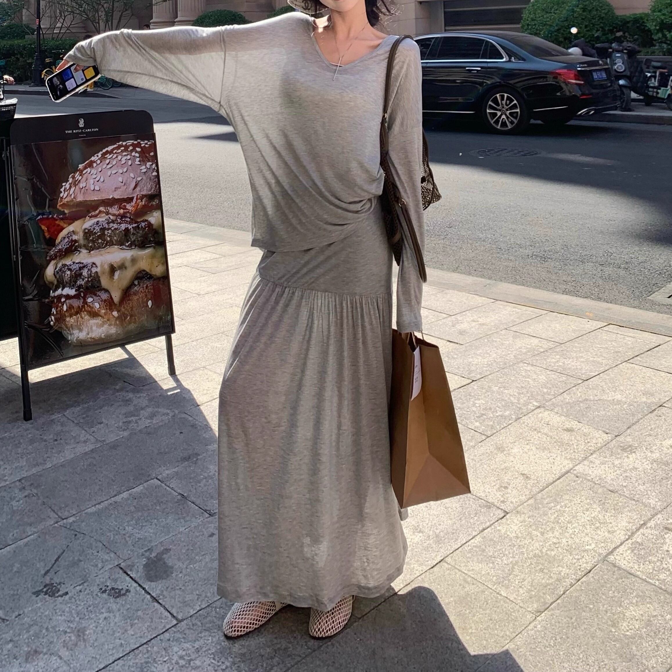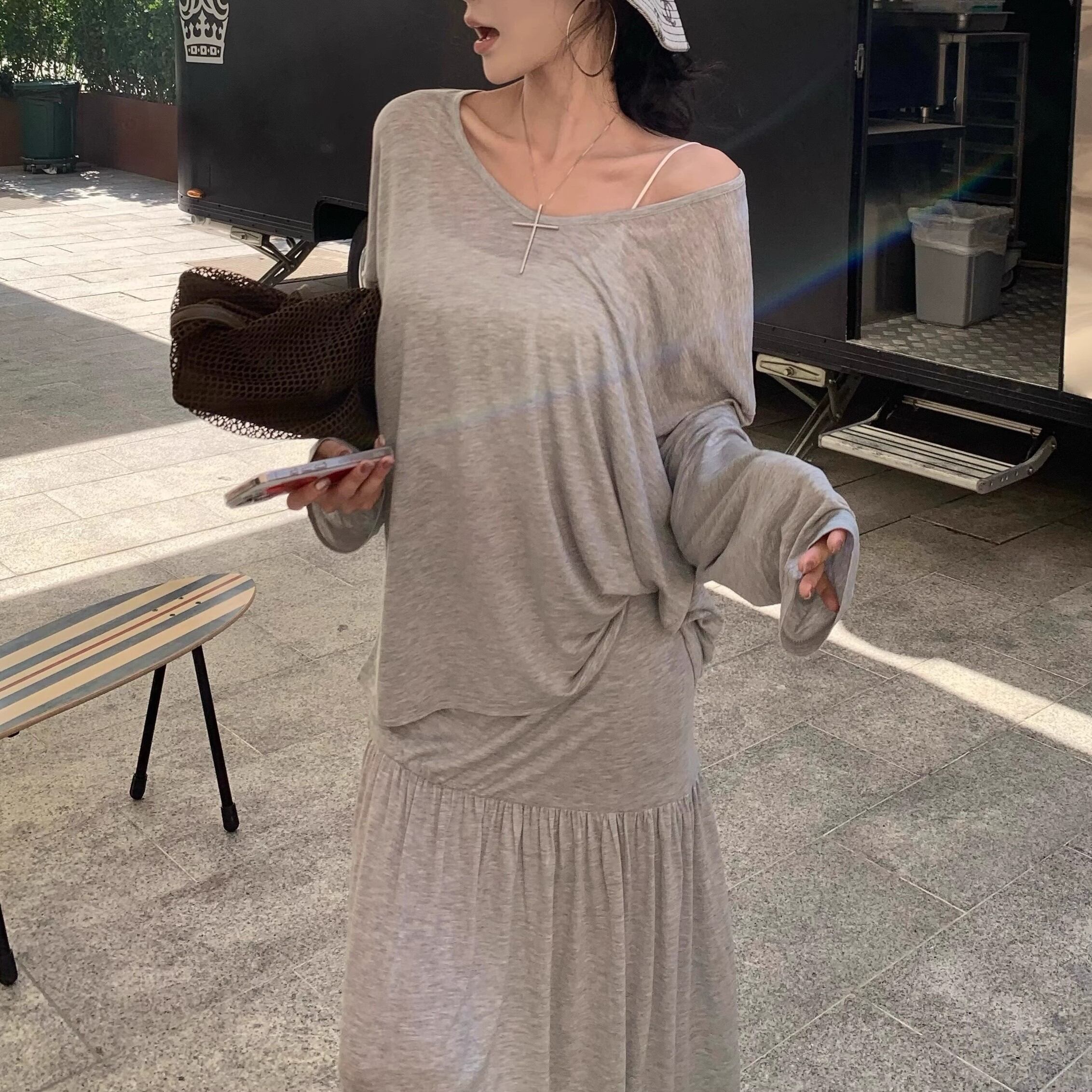 【2点セット】3色/フーディーカシュクールトップス+マーメイドスカート ・12506