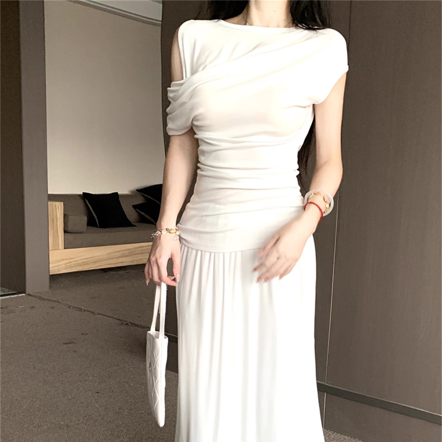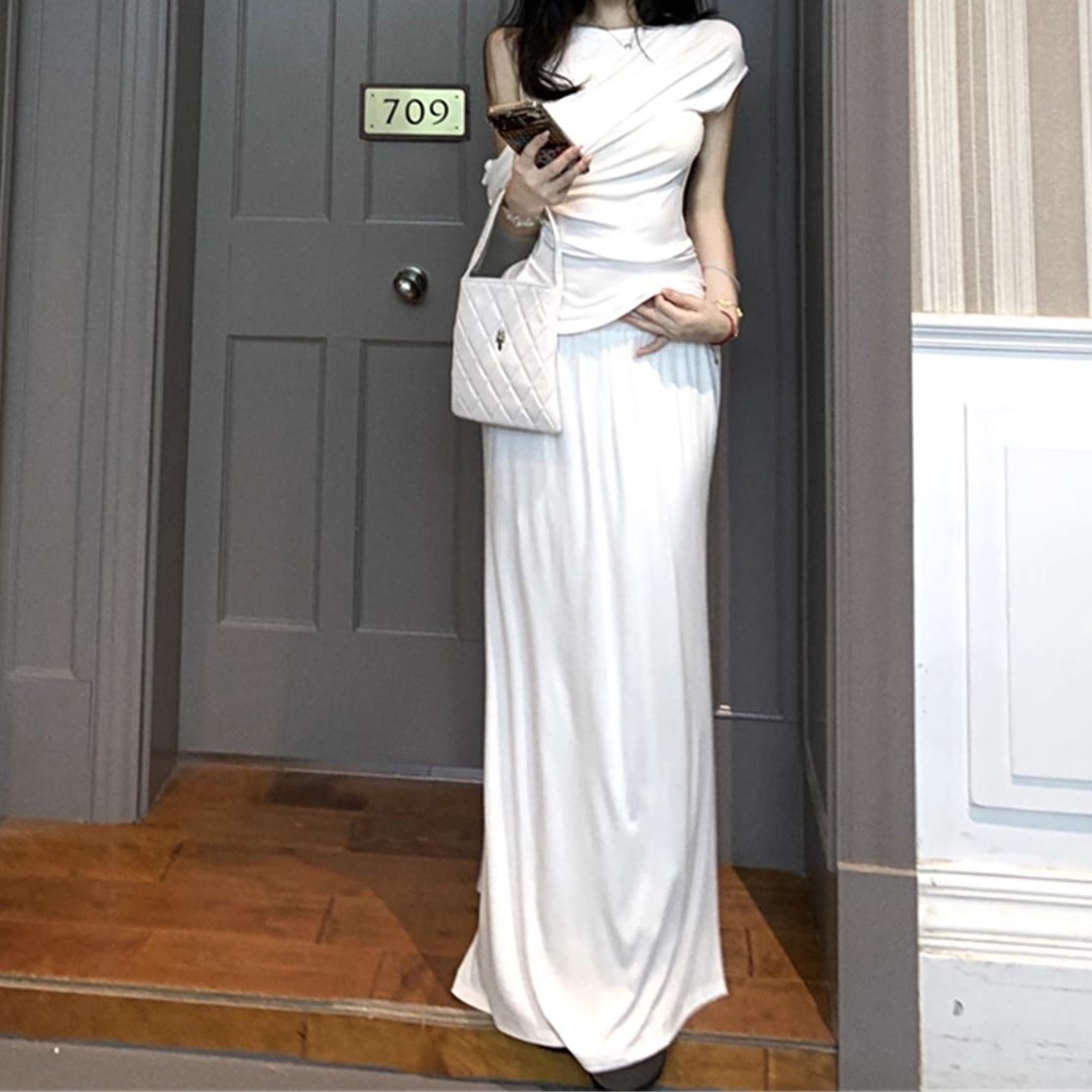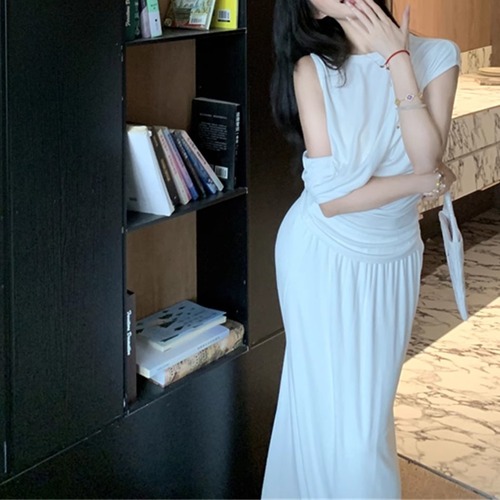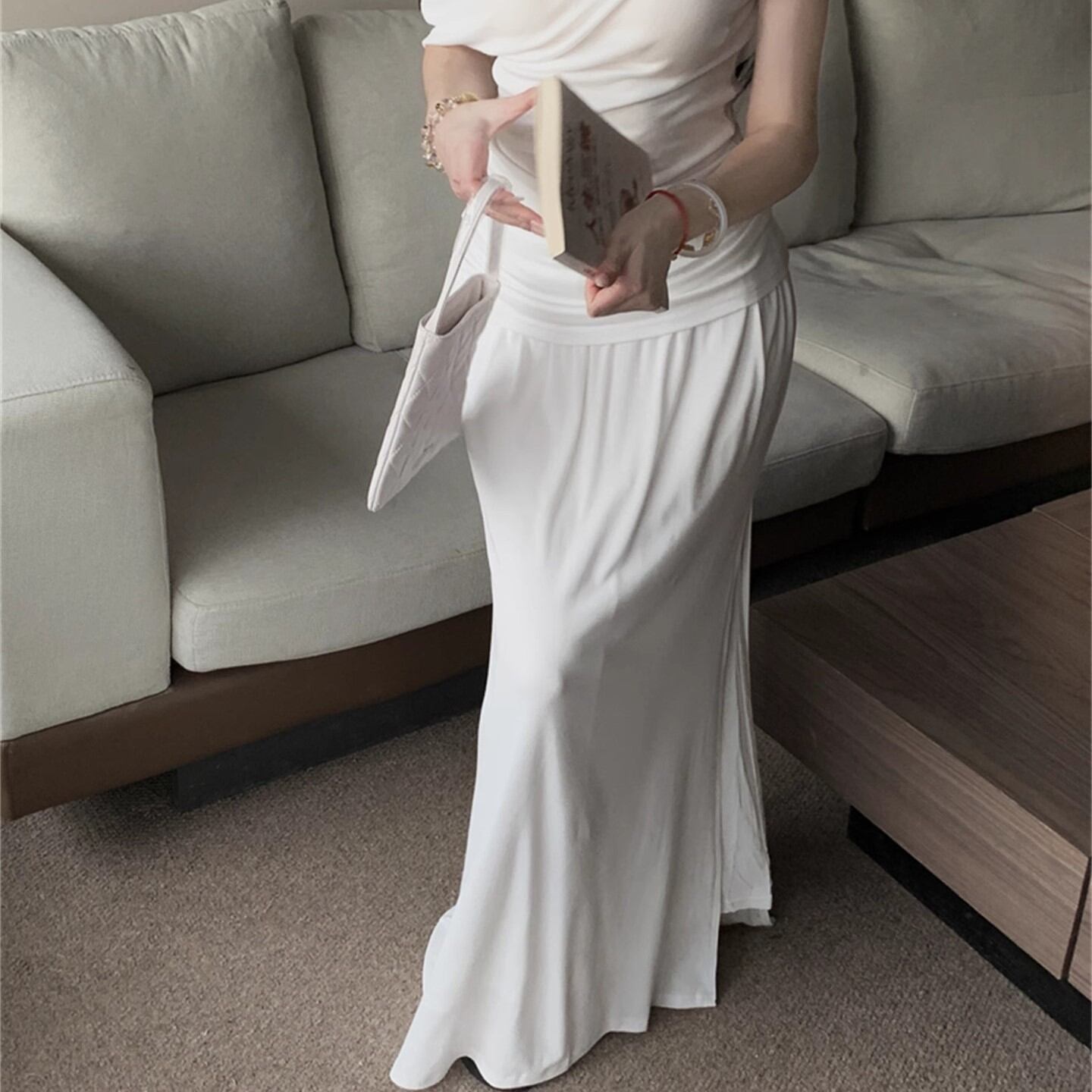 【2点セット】3色/フーディーカシュクールトップス+マーメイドスカート ・12506