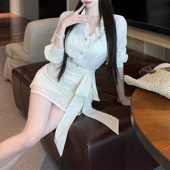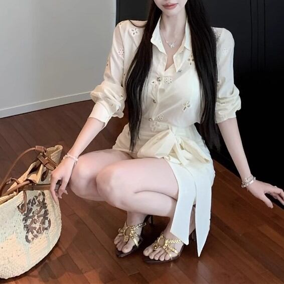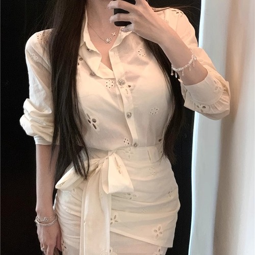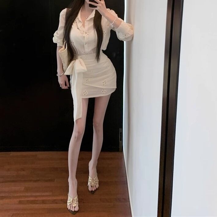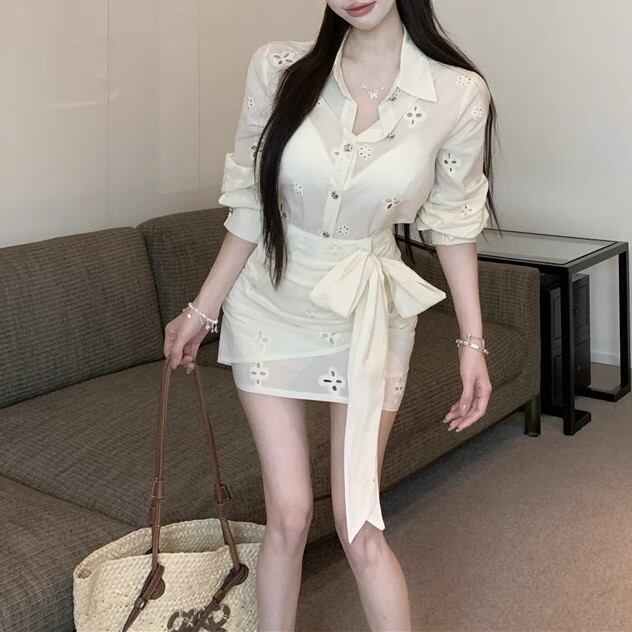 【2点セット】3色/フーディーカシュクールトップス+マーメイドスカート ・12506