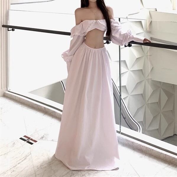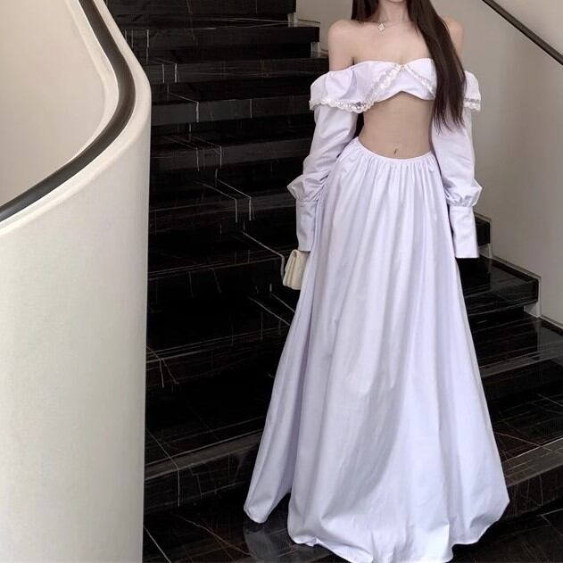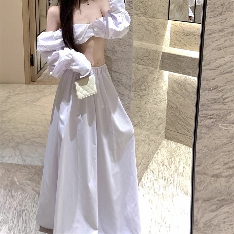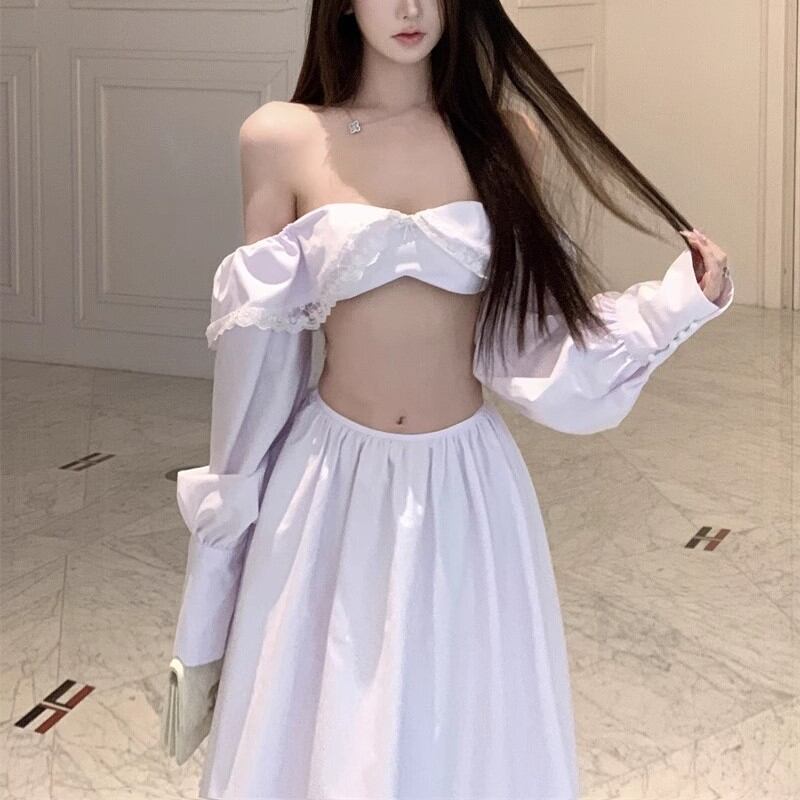 【3点セット】レースブラレット+オフショルトップス+レースヘムスカート ・12766
