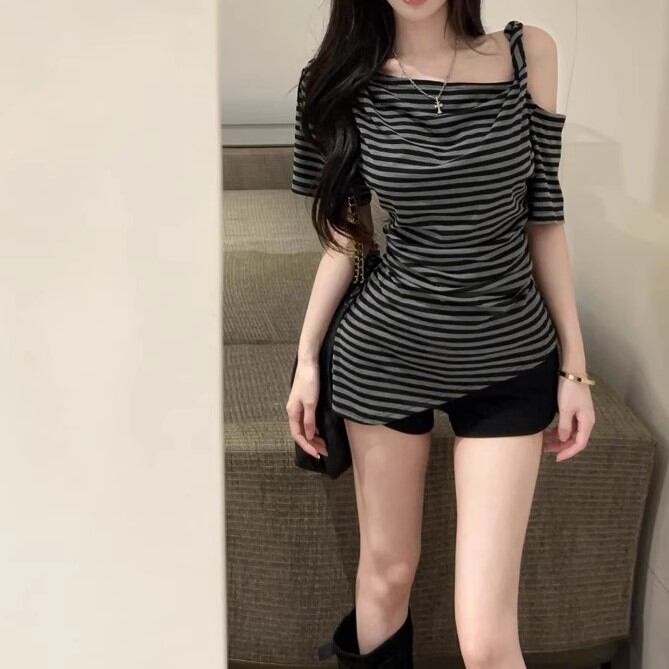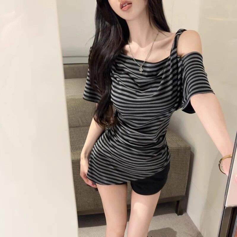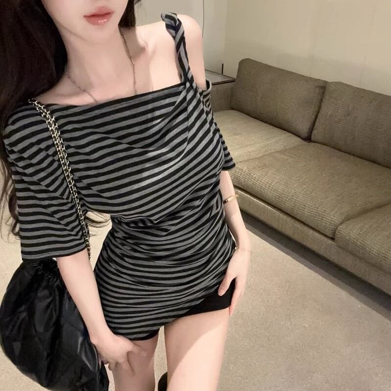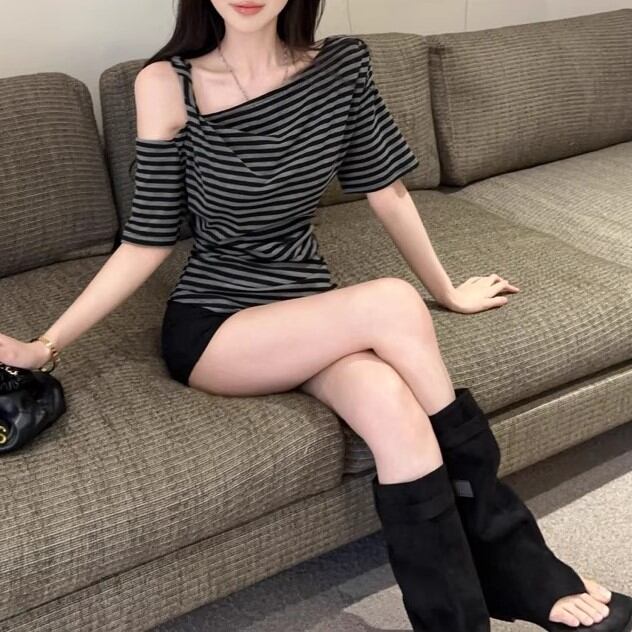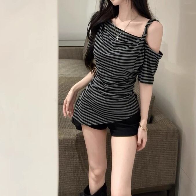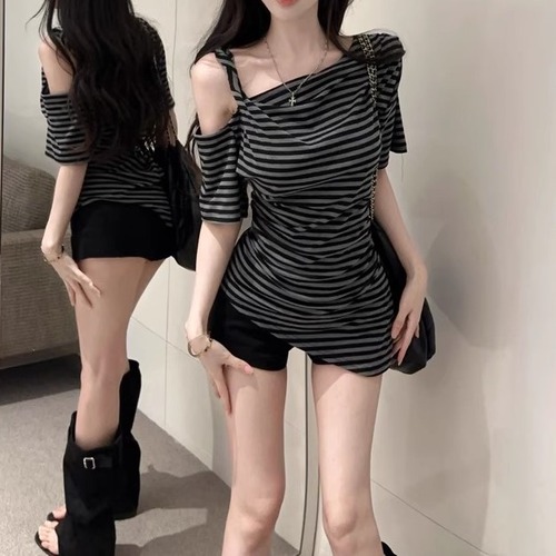 5色/オープンショルダードレープネックトップス ・12357