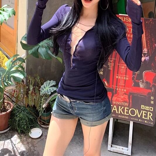 3色/ファーカラーレースアップコンビトップス ・12904