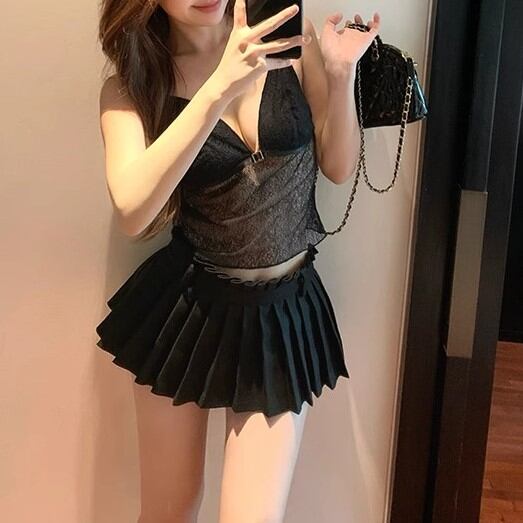 【3点セット】レースブラレット+オフショルトップス+レースヘムスカート ・12766