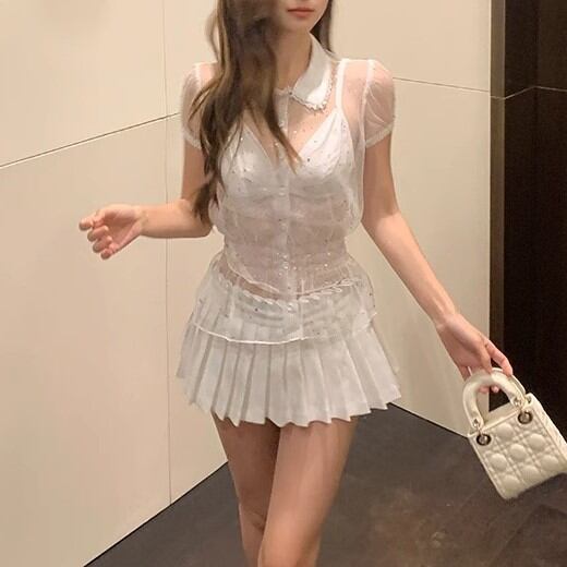 ▽Instagram「新作情報配信中」 フォローお願いいたします。 https://www.instagram.com/rote_roze.official/ ▼カラー ブラック(画像2枚目) ホワイト(画像3枚目) ▼サイズ [ Sサイズ ] ブラウス:着丈54cm バスト93cm ウエスト49cm キャミ:着丈21cm バスト68cm ウエスト67cm [ Mサイズ ] ブラウス:着丈55cm バスト97cm ウエスト53cm キャミ:着丈22cm バスト72cm ウエスト71cm ※1-3cm程度の誤差がある場合がございます。予めご了承ください。 ▼シーズン 春,夏 ▼同じカテゴリの商品はこちら https://www.roteroze.com/categories/4991976 ▽お支払い方法 ・クレジットカード決済 ・キャリア決済 (docomo/au/Softbank/Y!mobile) ・後払い決済 (商品お届け後コンビニ払いなど) ▽注意点 ※こちらの商品は決済から10日-3週間前後でのお届けとなります。 ※配送日時指定等に関しては、ご指定できないことご了承くださいませ。 ※できる限り早くお届けできるように手配させて頂きます。 ※検品はしておりますが、もし届いた商品に不備がありましたら、誠実に対応させていただきます。 商品ID:RR011332