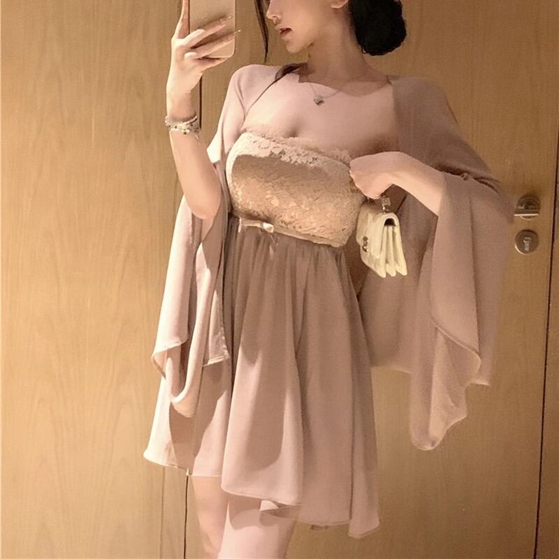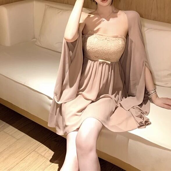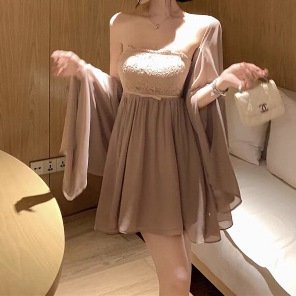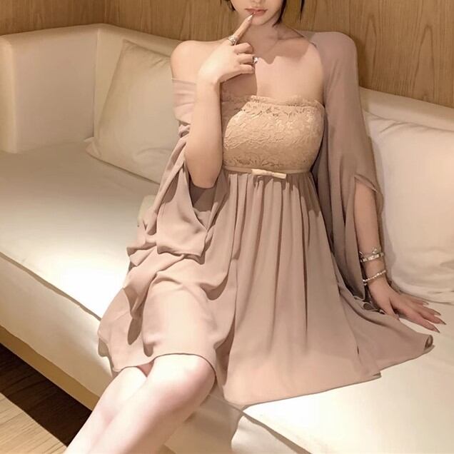 【3点セット】レースブラレット+オフショルトップス+レースヘムスカート ・12766