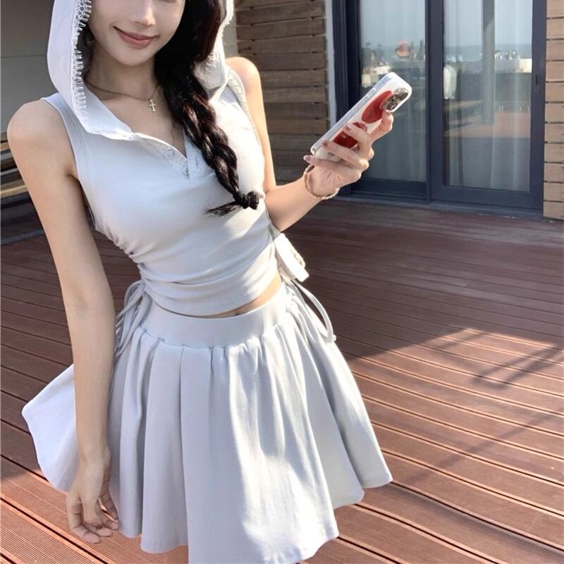 【2点セット】3色/フーディーカシュクールトップス+マーメイドスカート ・12506
