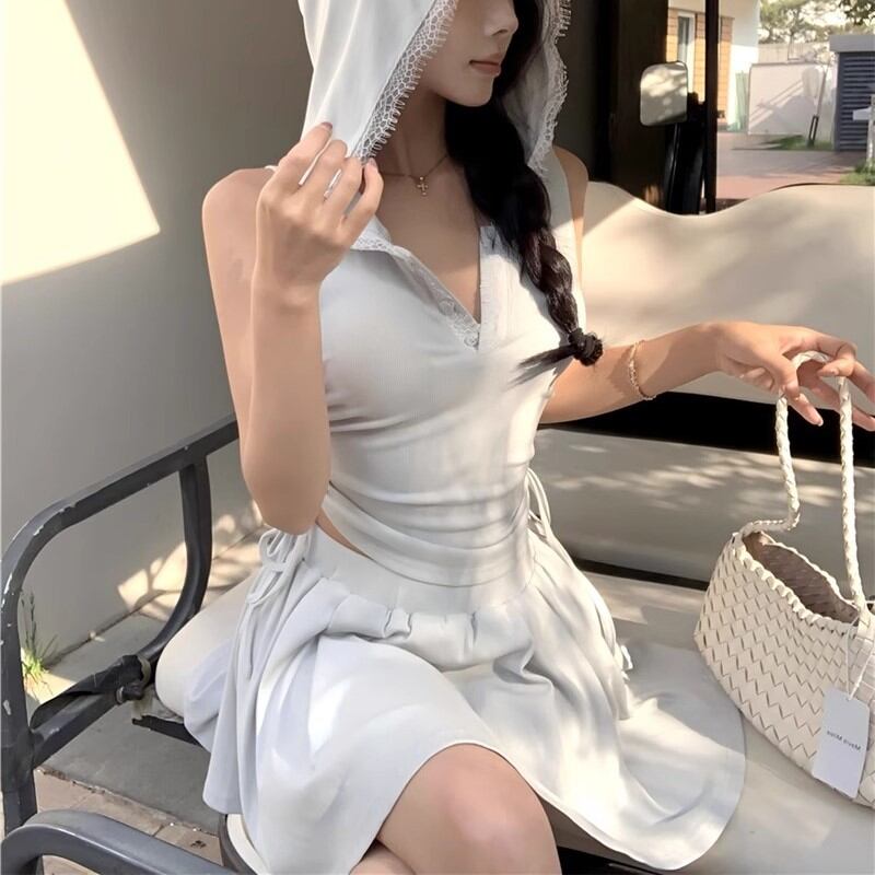 【3点セット】レースブラレット+オフショルトップス+レースヘムスカート ・12766