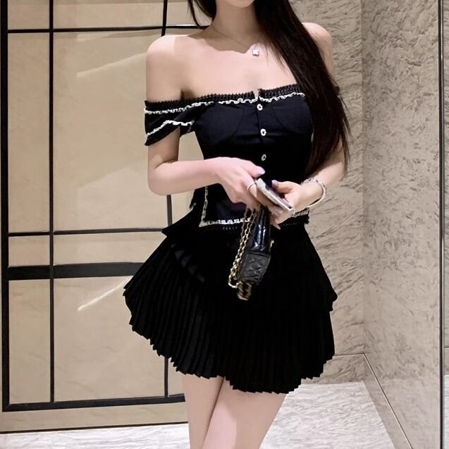 【3点セット】レースブラレット+オフショルトップス+レースヘムスカート ・12766