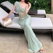 【2点セット】3色/フーディーカシュクールトップス+マーメイドスカート ・12506