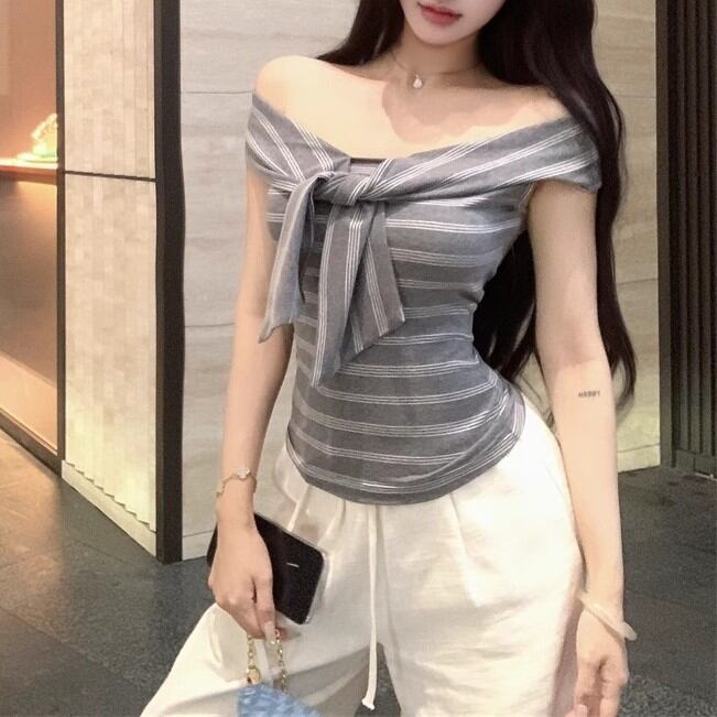 5色/オープンショルダードレープネックトップス ・12357