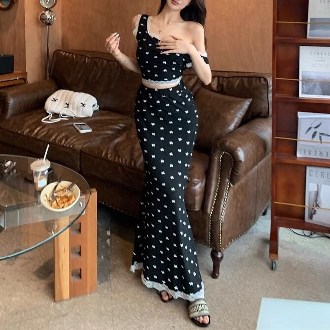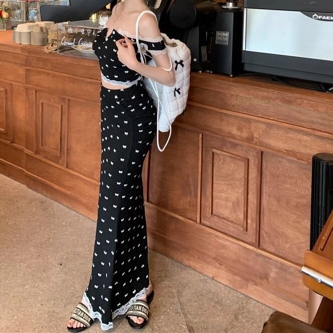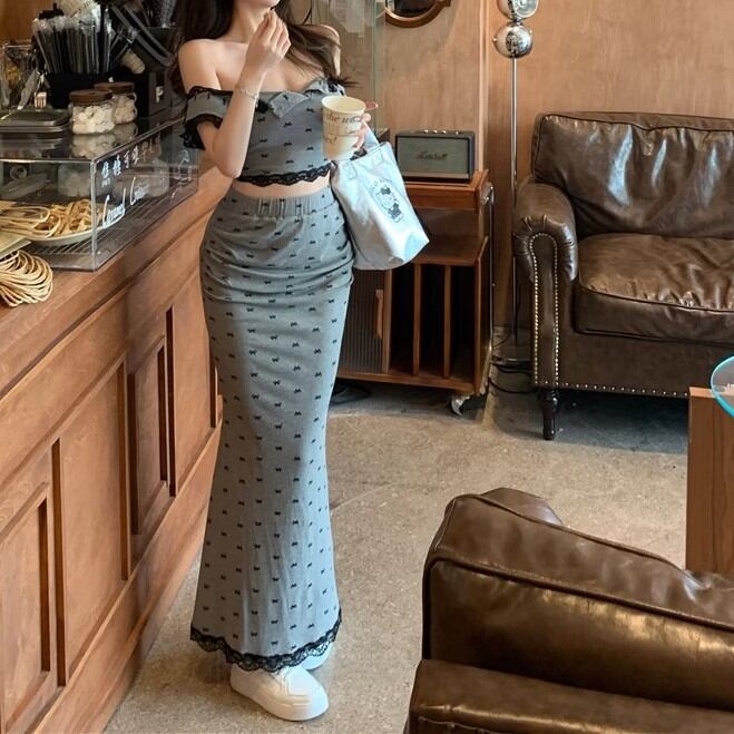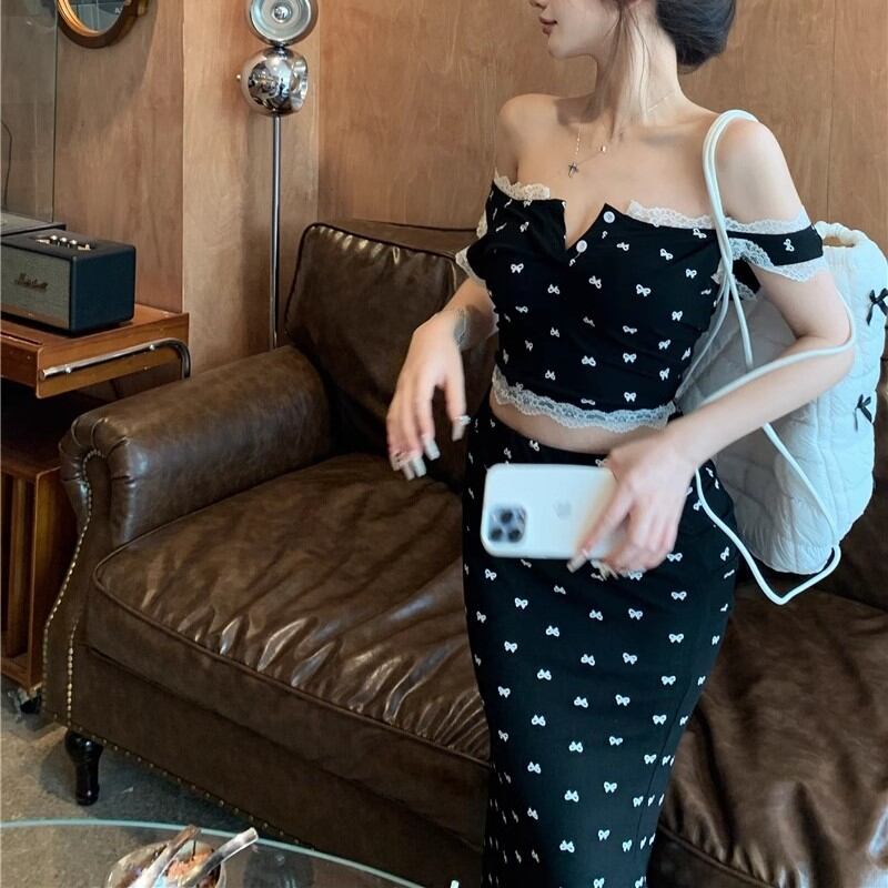 【3点セット】レースブラレット+オフショルトップス+レースヘムスカート ・12766