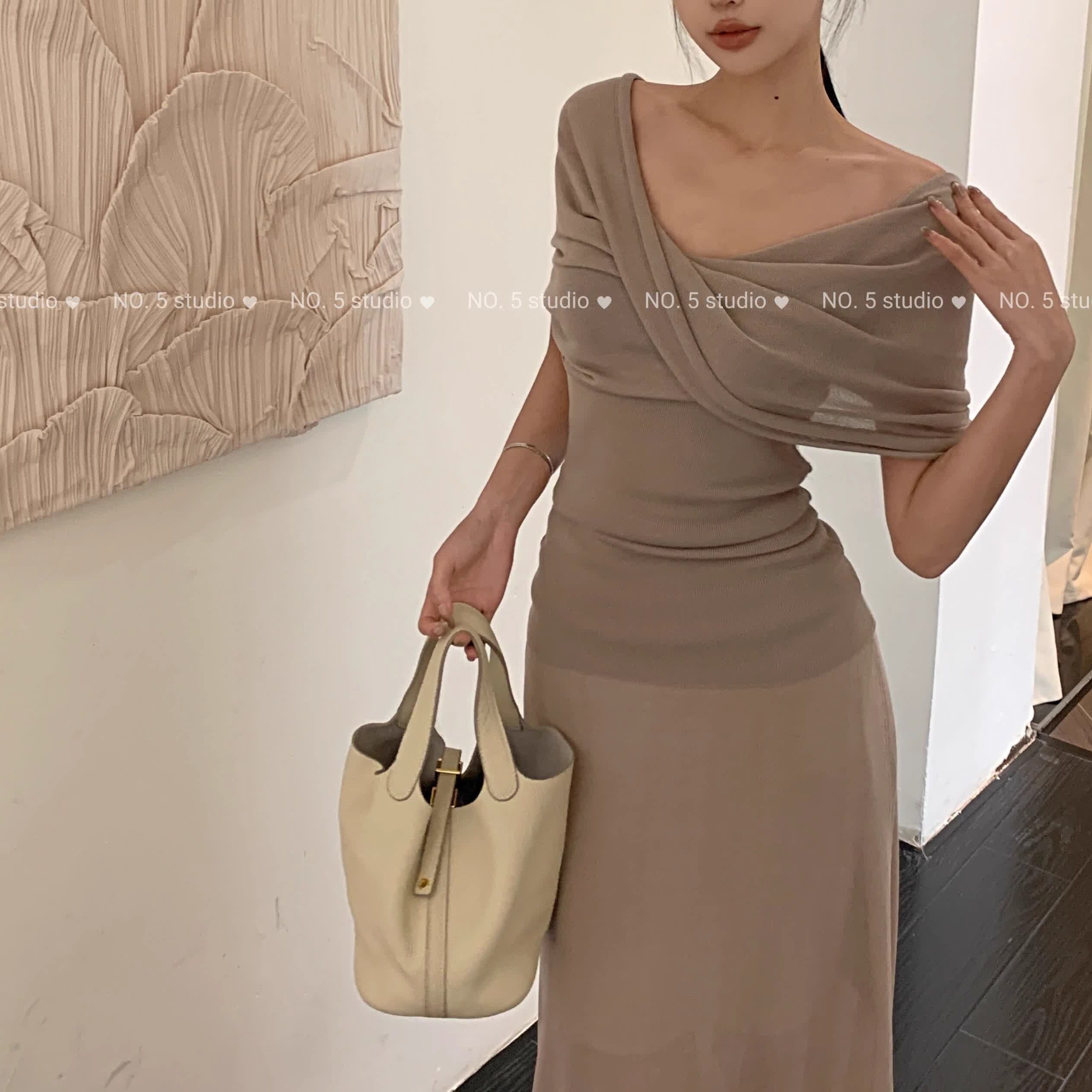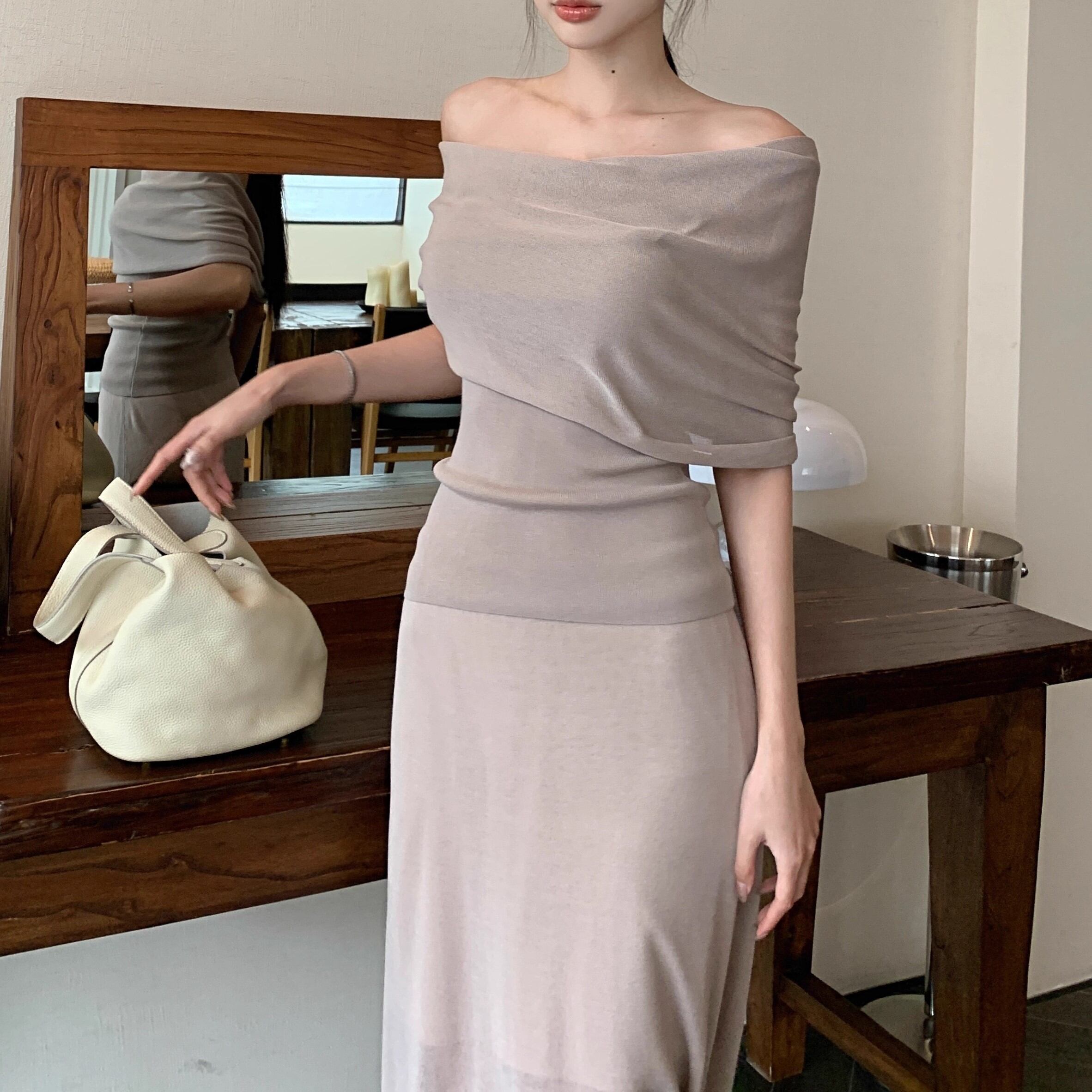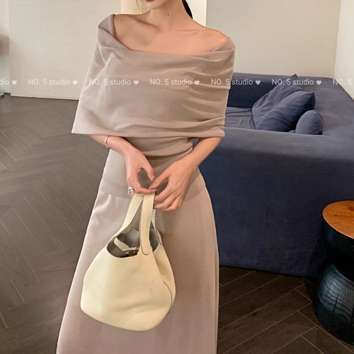 【2点セット】3色/フーディーカシュクールトップス+マーメイドスカート ・12506