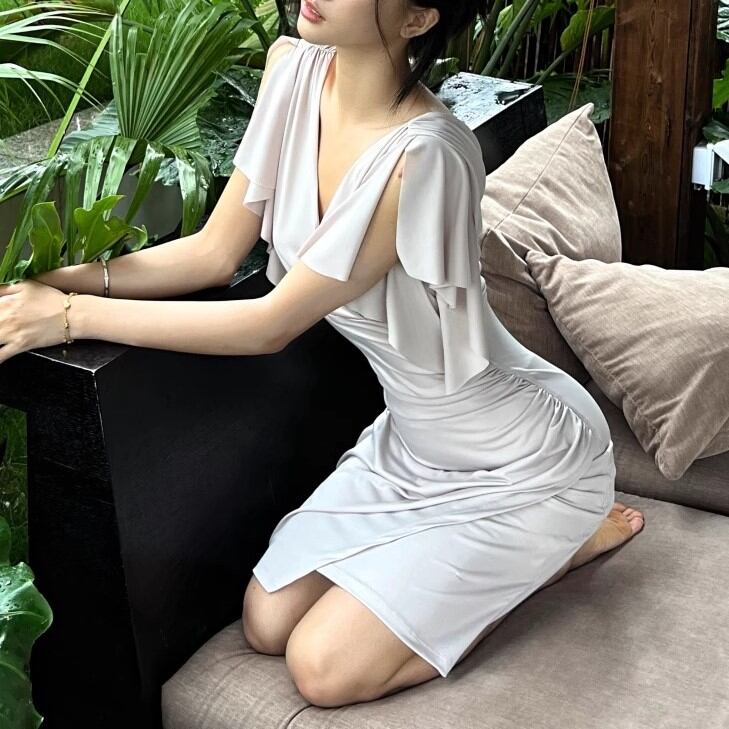 4色/シアースリーブストラップショルダーワンピ ・12626