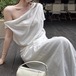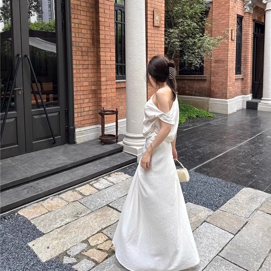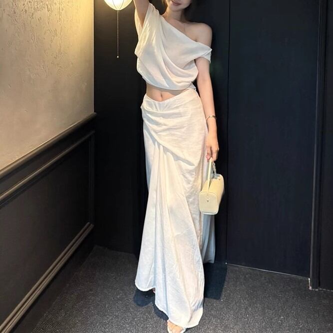 【2点セット】3色/フーディーカシュクールトップス+マーメイドスカート ・12506