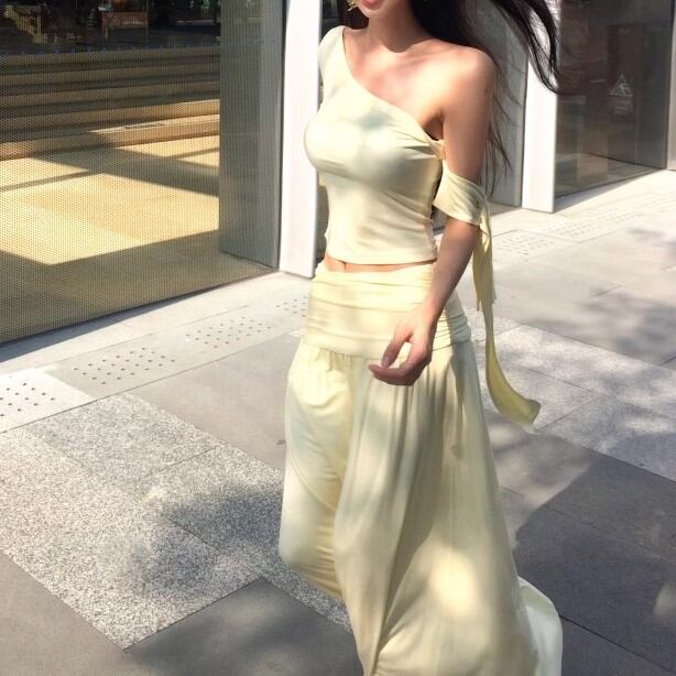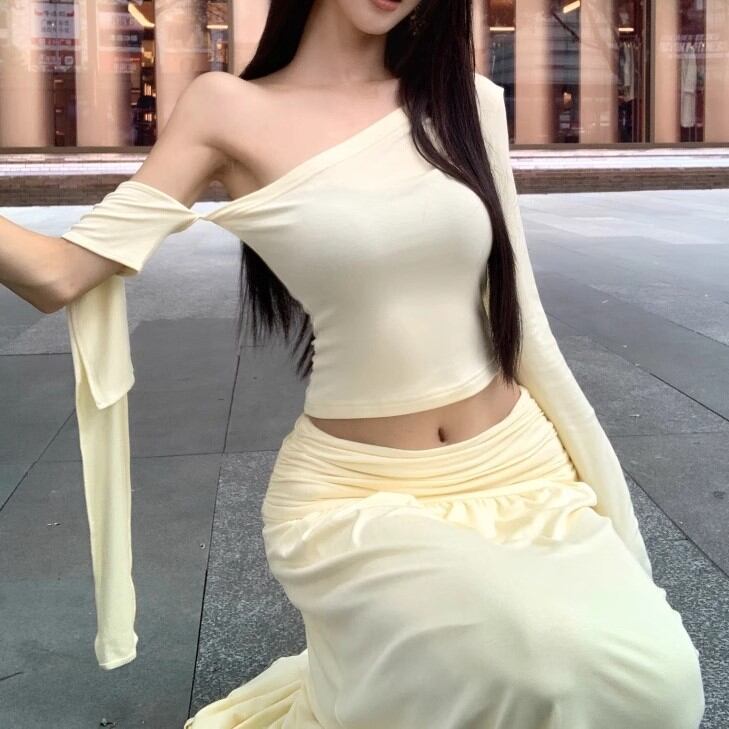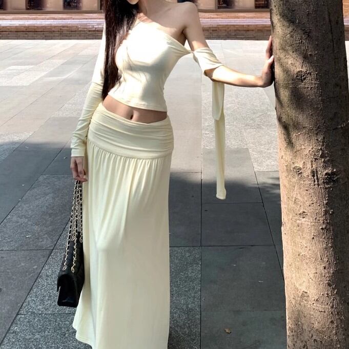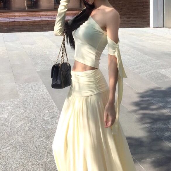 【2点セット】3色/フーディーカシュクールトップス+マーメイドスカート ・12506