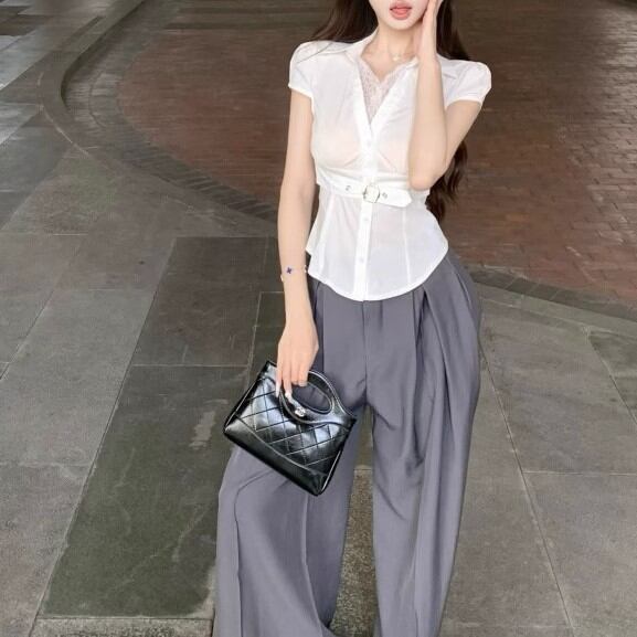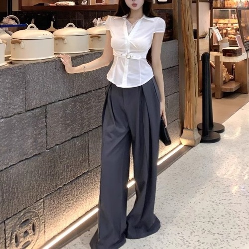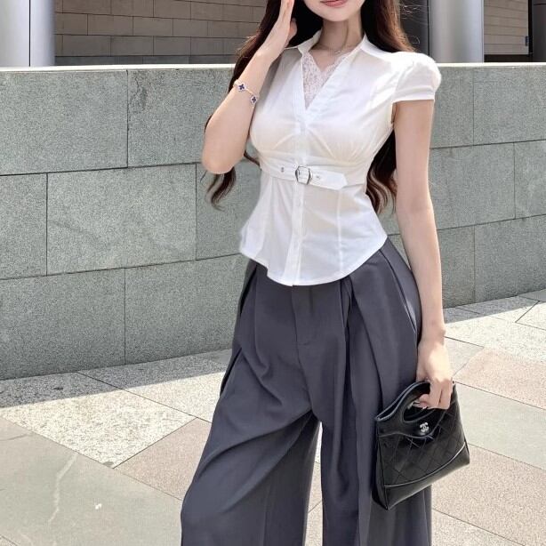 ウエストWボタンアシメショルダーブラウス ・13137
