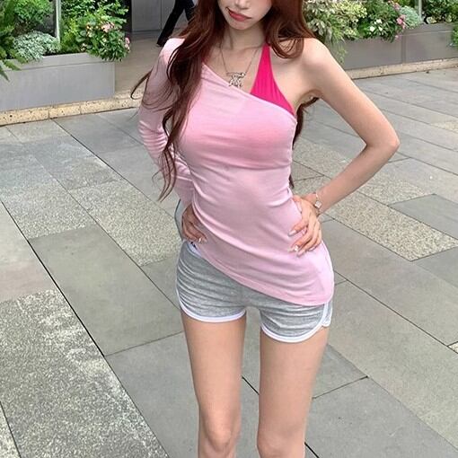 5色/オープンショルダードレープネックトップス ・12357