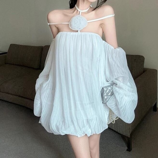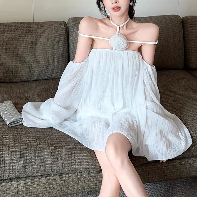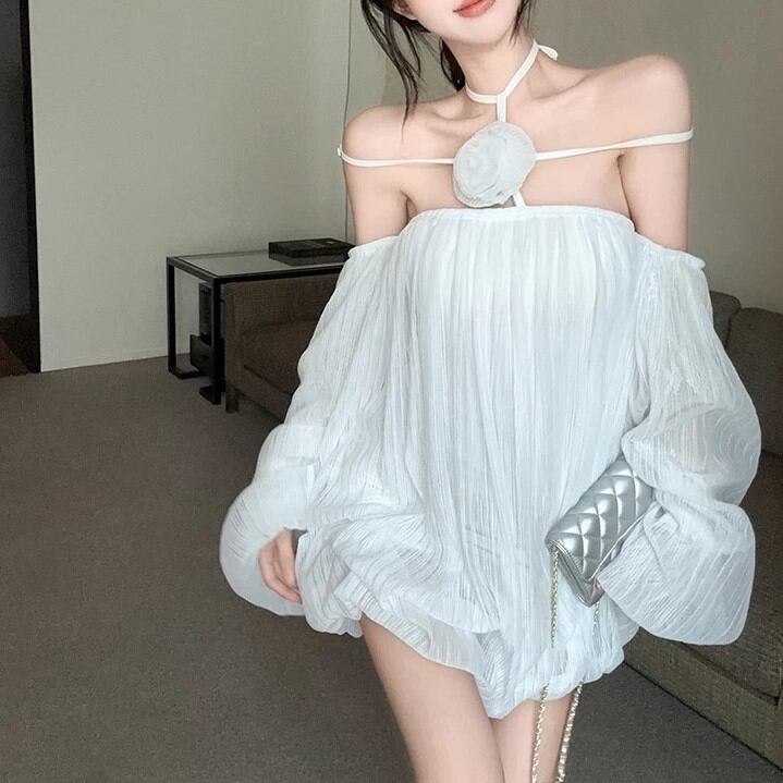 4色/シアースリーブストラップショルダーワンピ ・12626