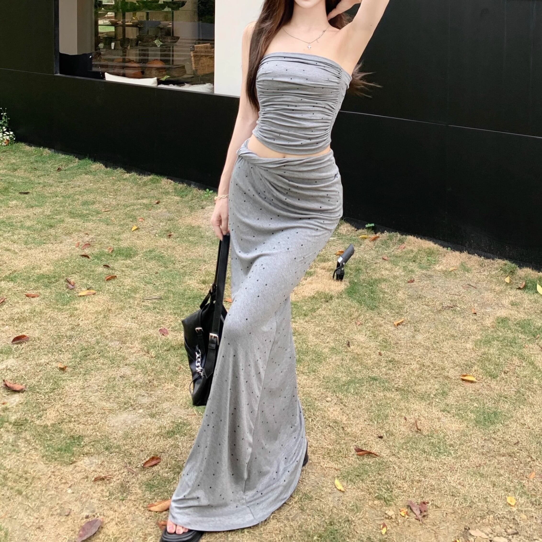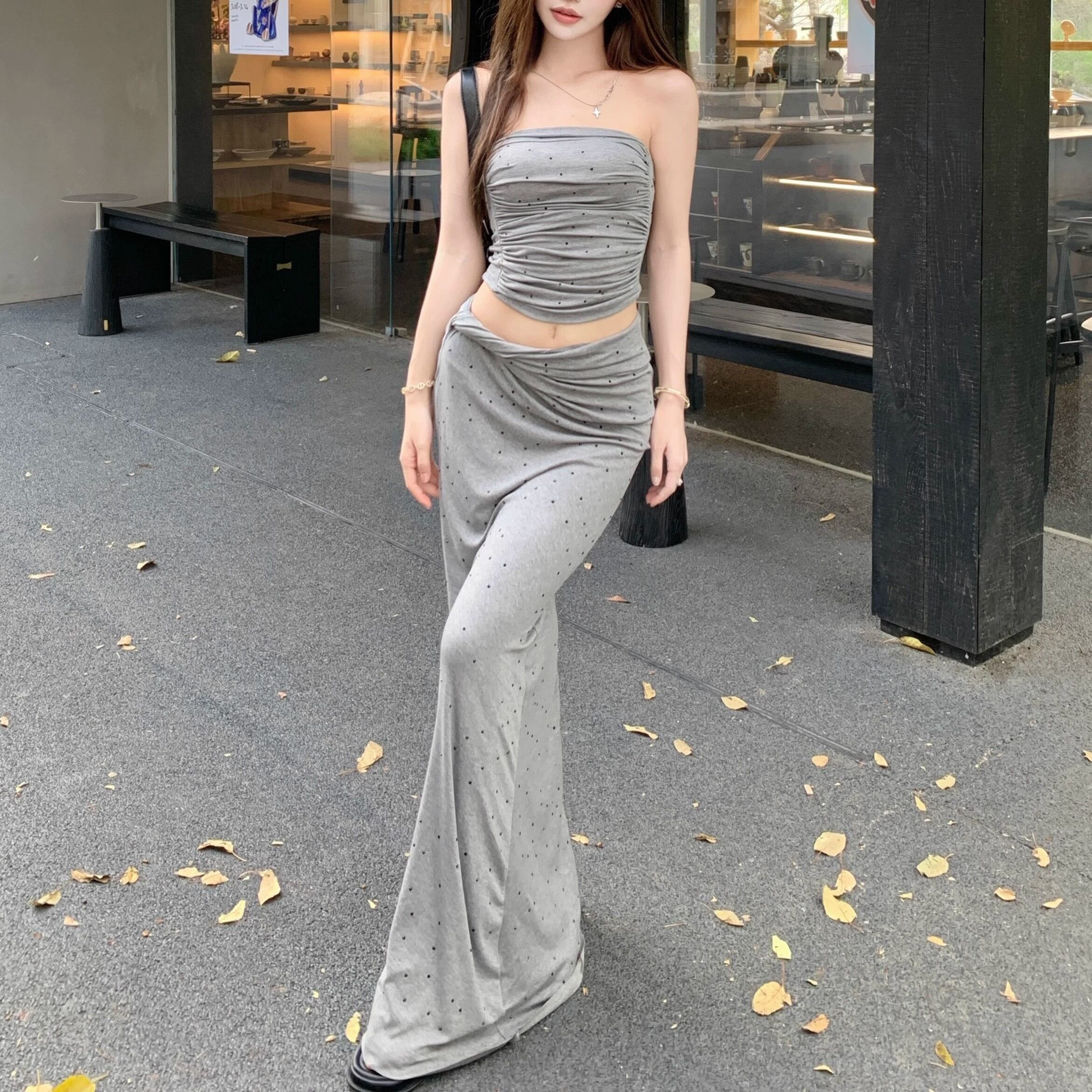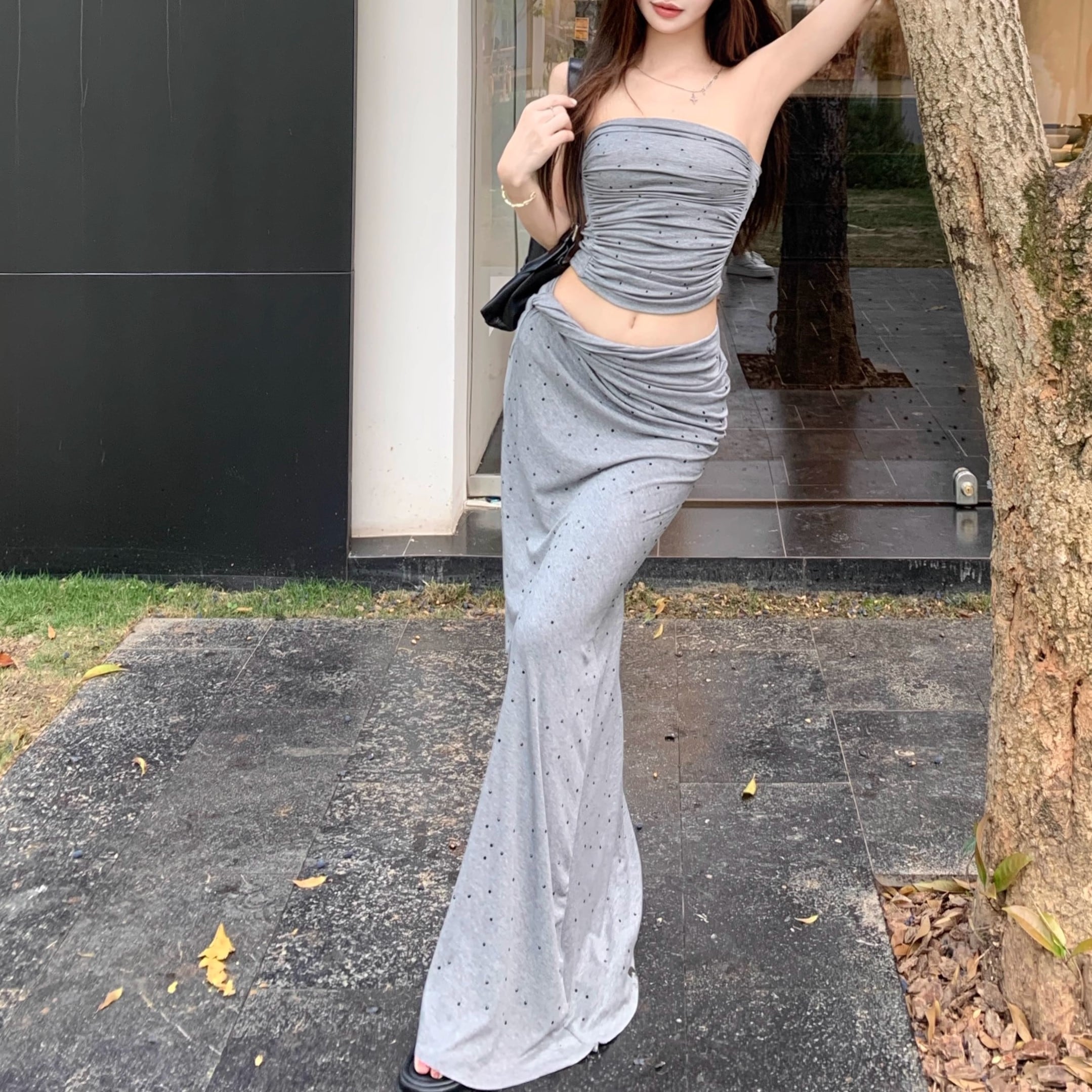 【2点セット】3色/フーディーカシュクールトップス+マーメイドスカート ・12506