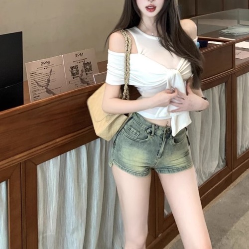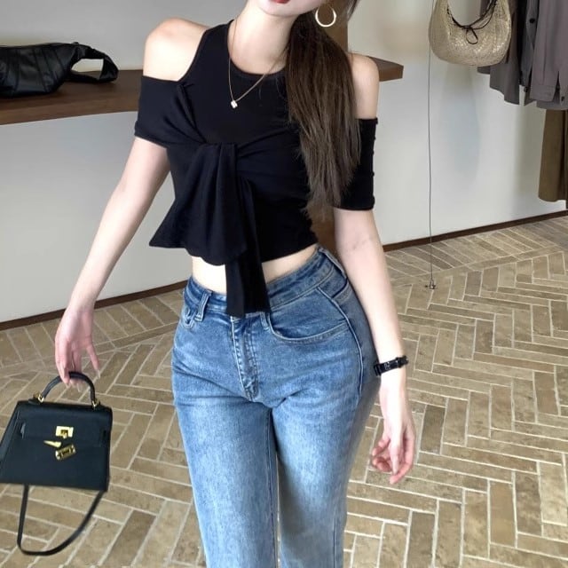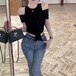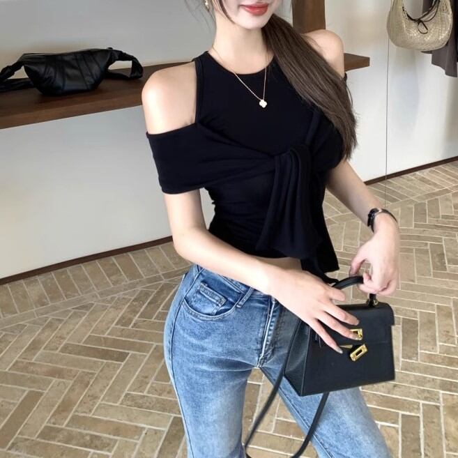5色/オープンショルダードレープネックトップス ・12357