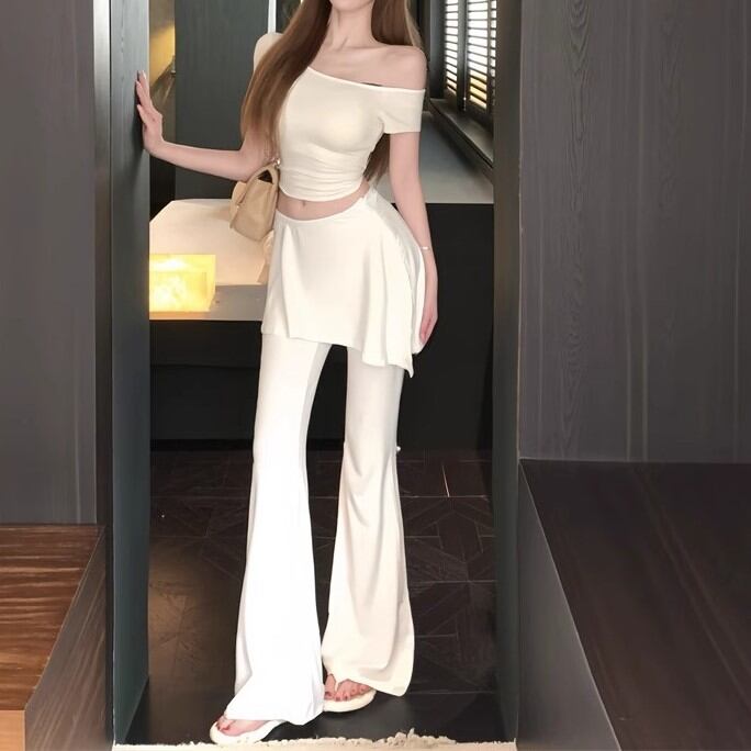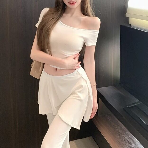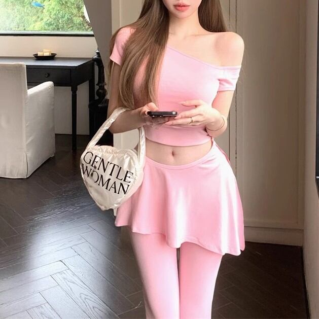 【3点セット】レースブラレット+オフショルトップス+レースヘムスカート ・12766