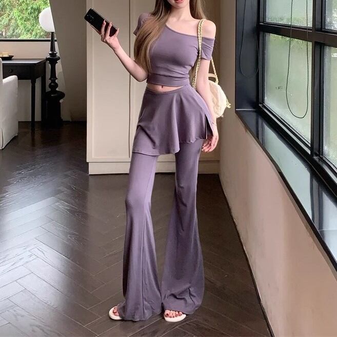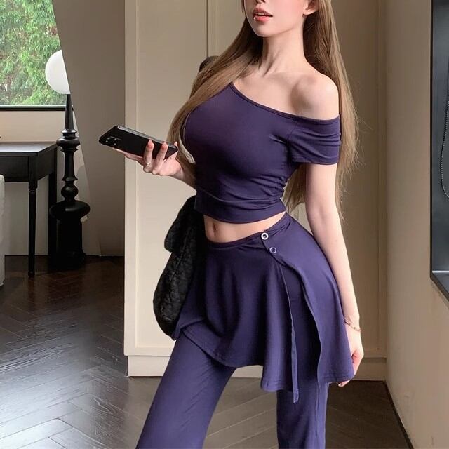 【2点セット】3色/フーディーカシュクールトップス+マーメイドスカート ・12506